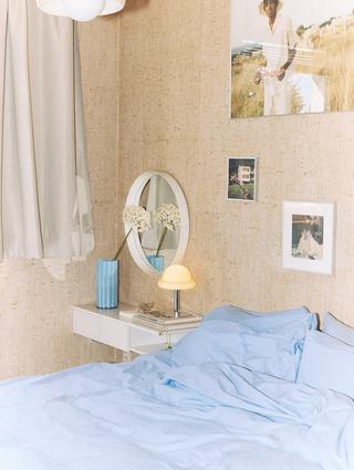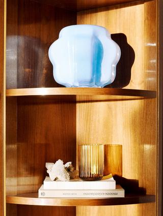 For Jessica og familien markerer flytningen ikke bare en ny adresse, men også realiseringen af en designvision. Blå nuancer skaber et sofistikeret fundament, der står i elegant kontrast til varmt teak og krom. Store vinduespartier lader skiftende dagslys bevæge sig hen over bløde tæpper og gamle træpaneler - arkitektoniske detaljer, som leder tankerne hen på husets Bauhaus-arv. Resultatet er et personligt nøje udvalgt happy place, hvor et retro-designsprog møder moderne skarphed, og hverdagen er indrammet af gennemtænkte valg.