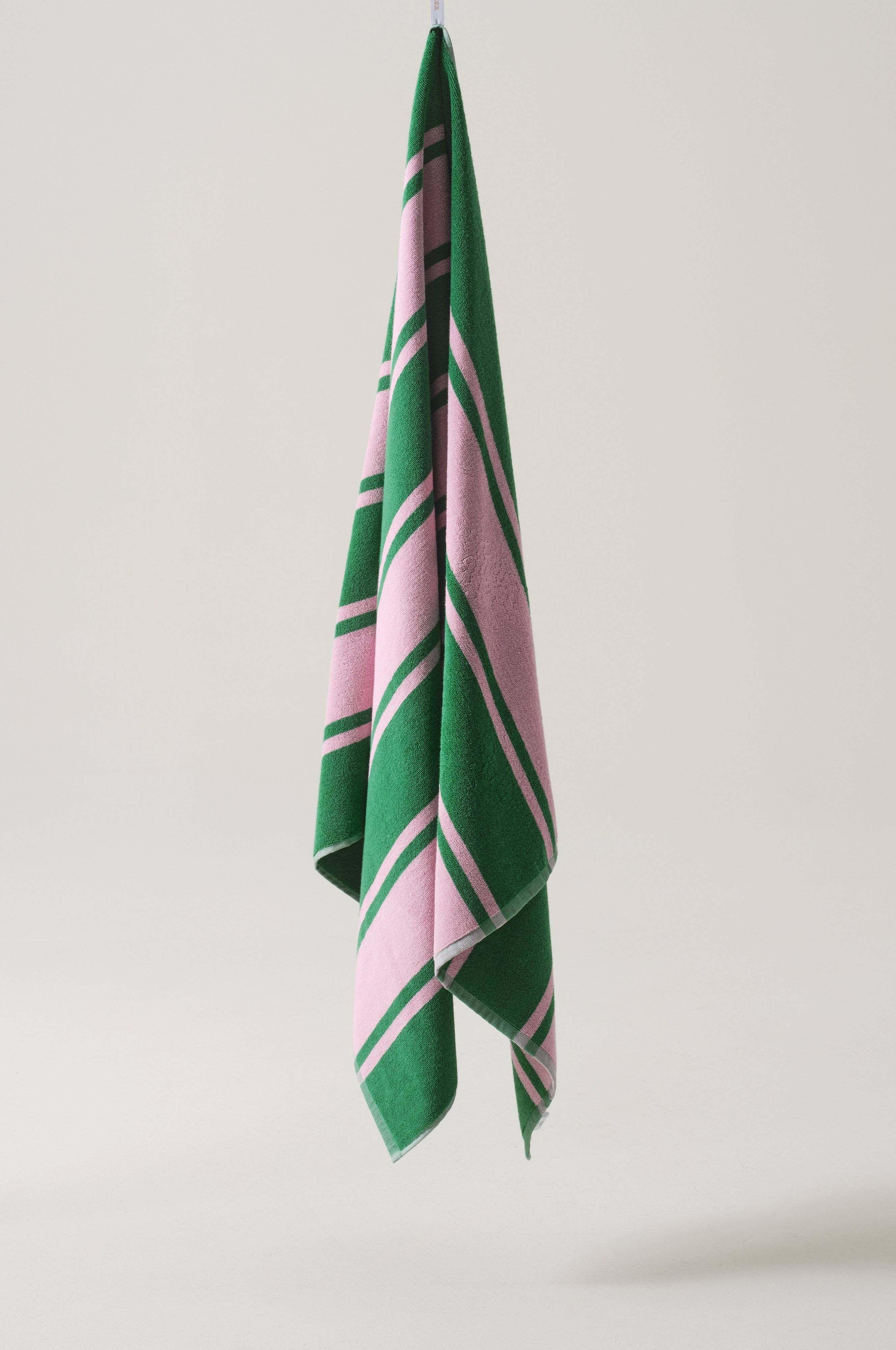Oplev ITALY, det ultimative strandhåndklæde fremstillet af blød bomuldsfrotté. Den dobbelte garnvævning sikrer ikke kun et unikt omvendt mønster på begge sider, men giver også uovertruffen komfort til dine stranddage. Med garnfarvede striber forener dette håndklæde moderne design med funktionalitet. Ideelt til dem, der elsker trendy, friske accenter i hjemmet og på stranden.