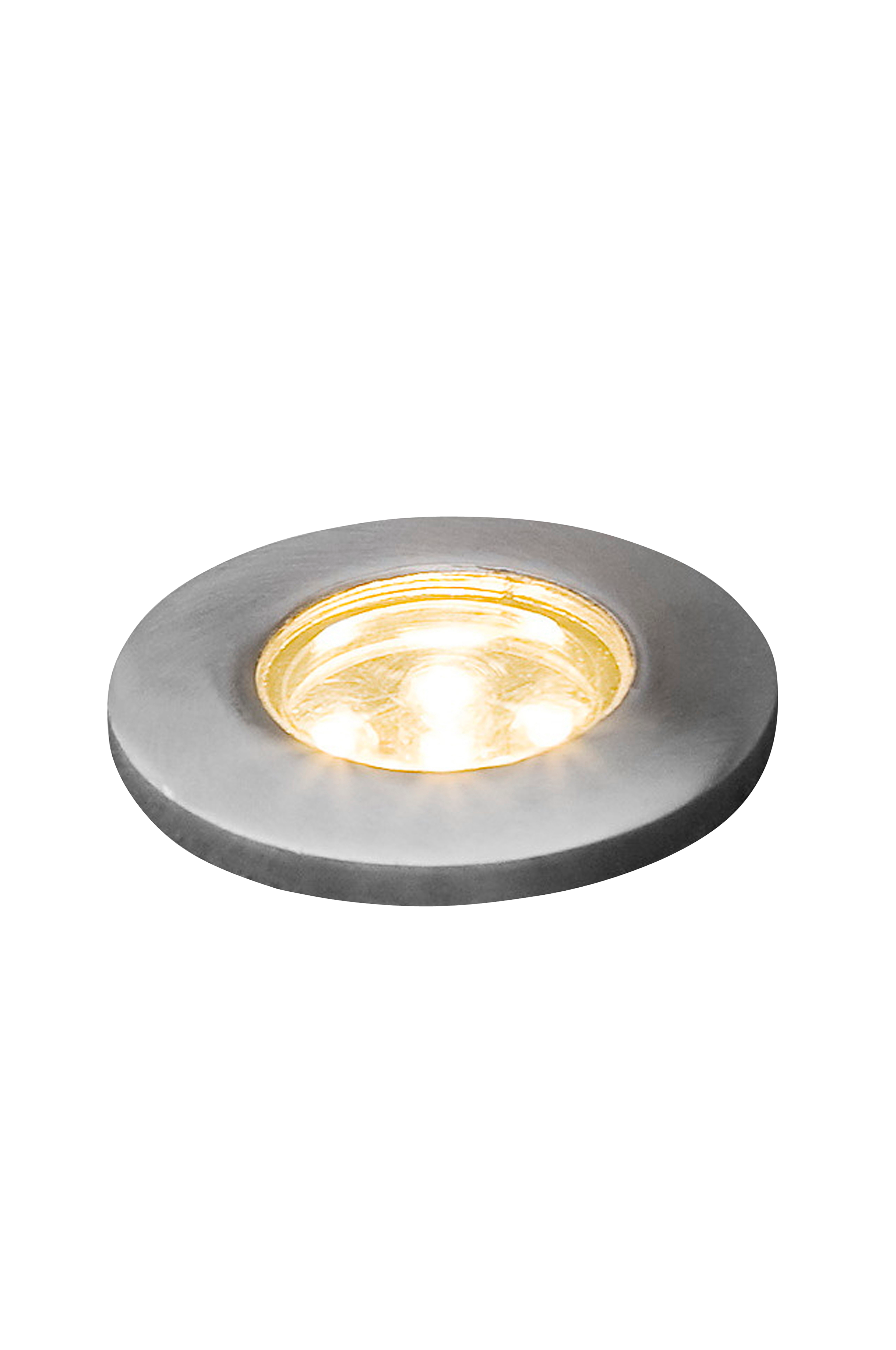 Jordspot Mini 3-pak. Fremstillet i rustfrit stål med en plan top. Dette sæt indeholder 3 jordspots. LED 0,36W/pære. Drives med 12V transformator.