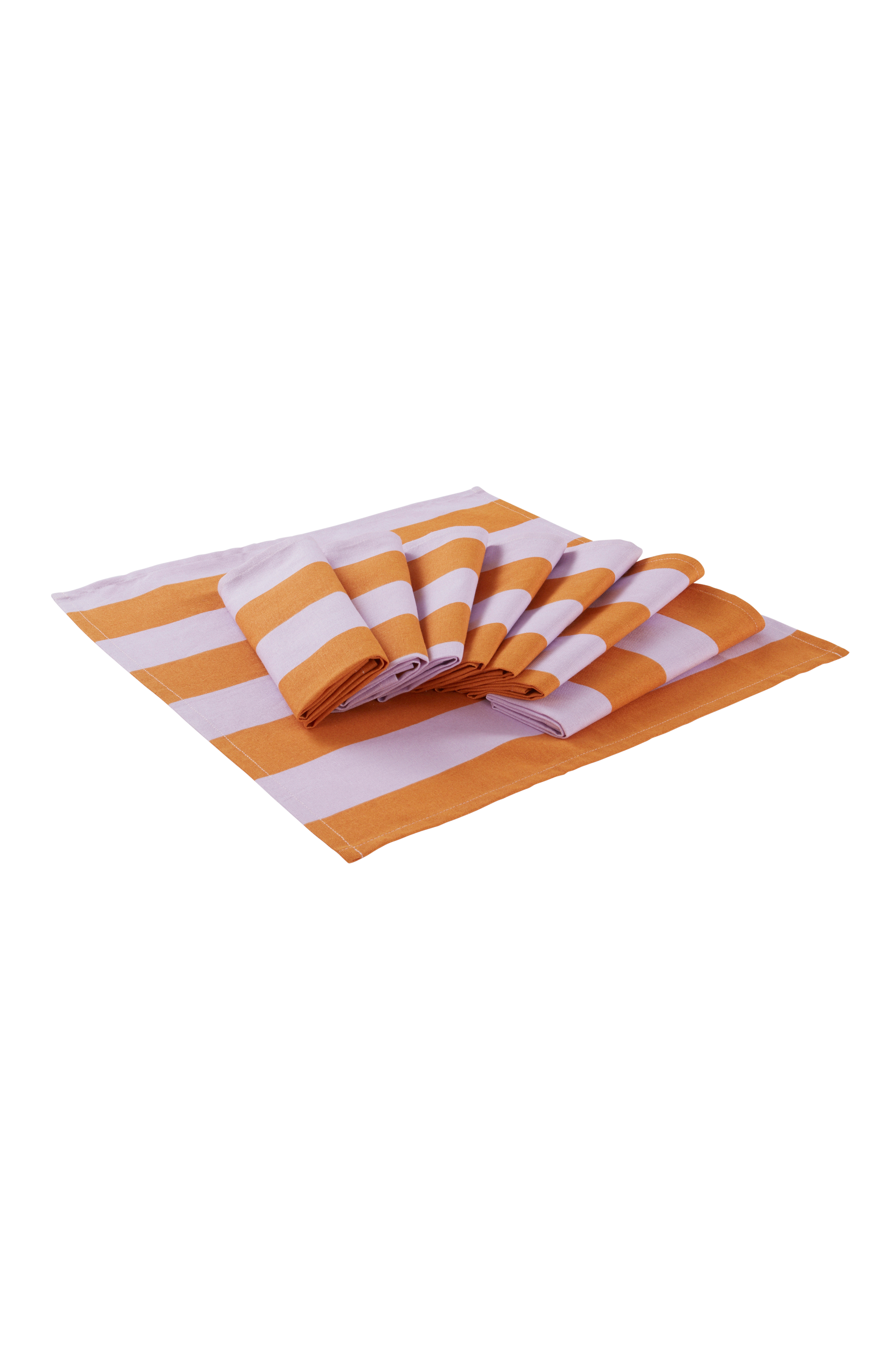 8-pak servietter med blokstribet mønster i kontrastfarver printet på vævet bomuldsstof.