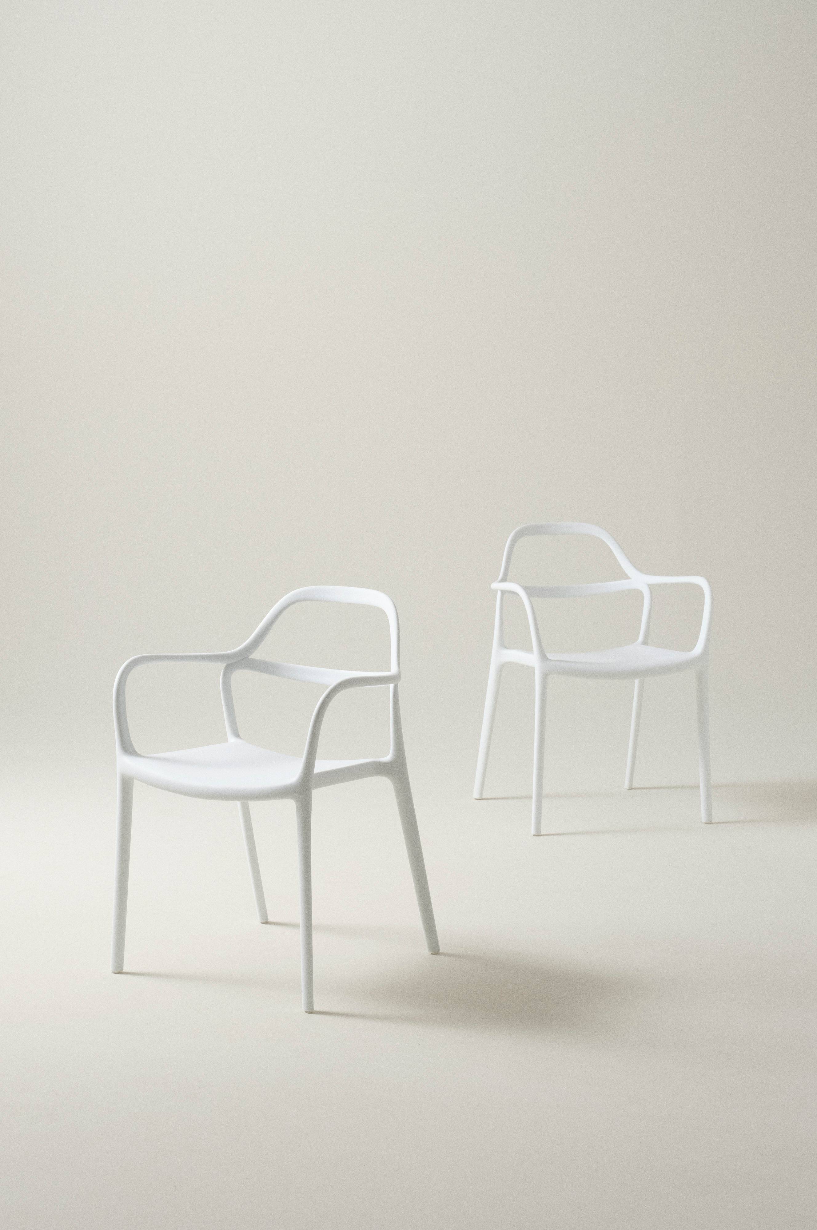 En glat og stilfuld stol, der kan stables. Let at tørre, da vi vil bruge dem udendørs på balkonen