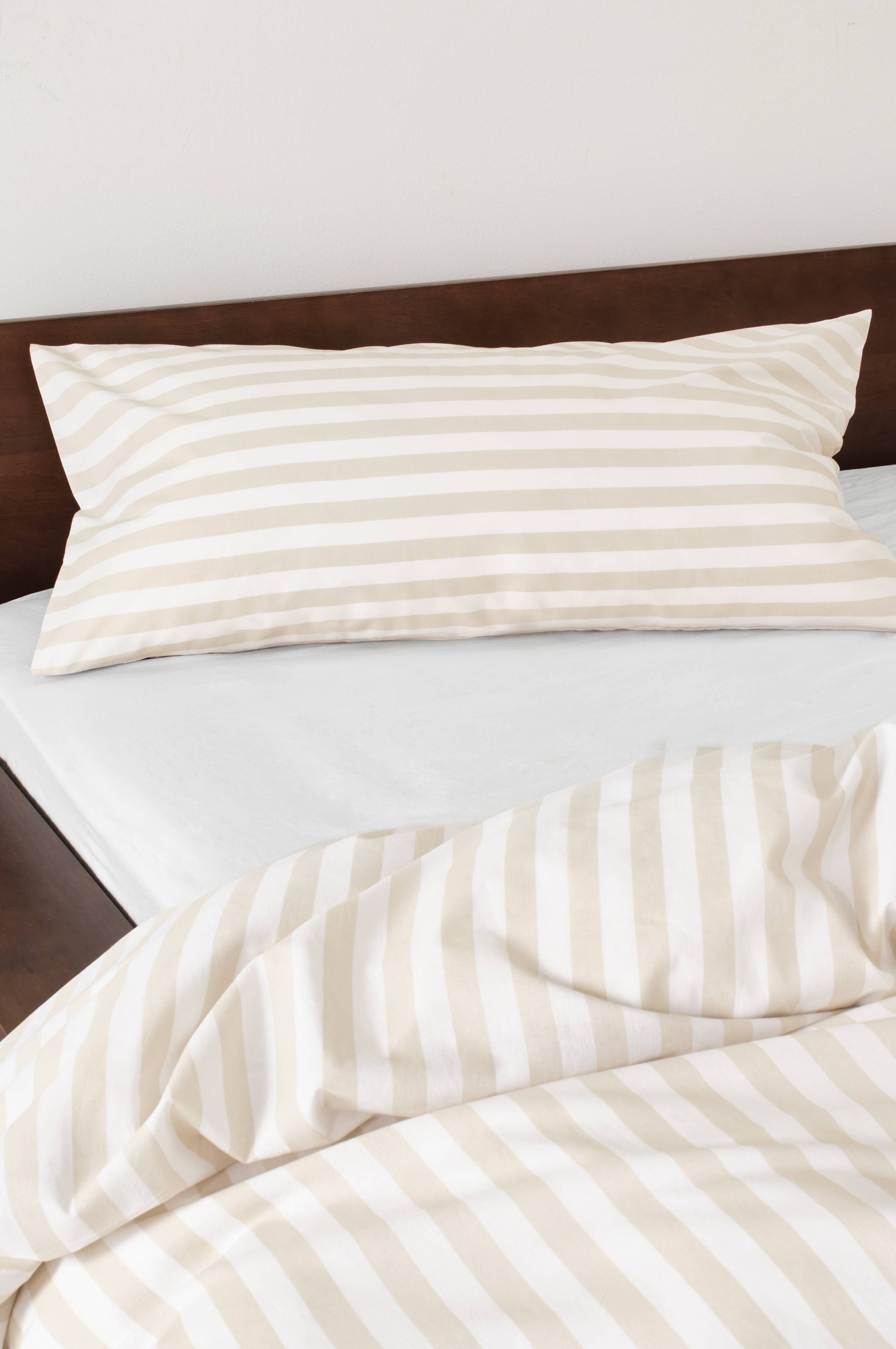 1-pak pudebetræk af stribet bomuld. Den tværgående stribe er printet i friske, sommerlige farver og på begge sider af pudebetrækket. Bomuld er en blød og behagelig kvalitet som føles kølig mod huden. Trådtæthed 144 TC. (Trådtætheden angiver antal tråde, thread count, pr. kvadrattomme i et stof. Jo højere trådtæthed desto højere kvalitet. Dog undtaget hør, der ofte væves løsere for at få det rette udtryk).