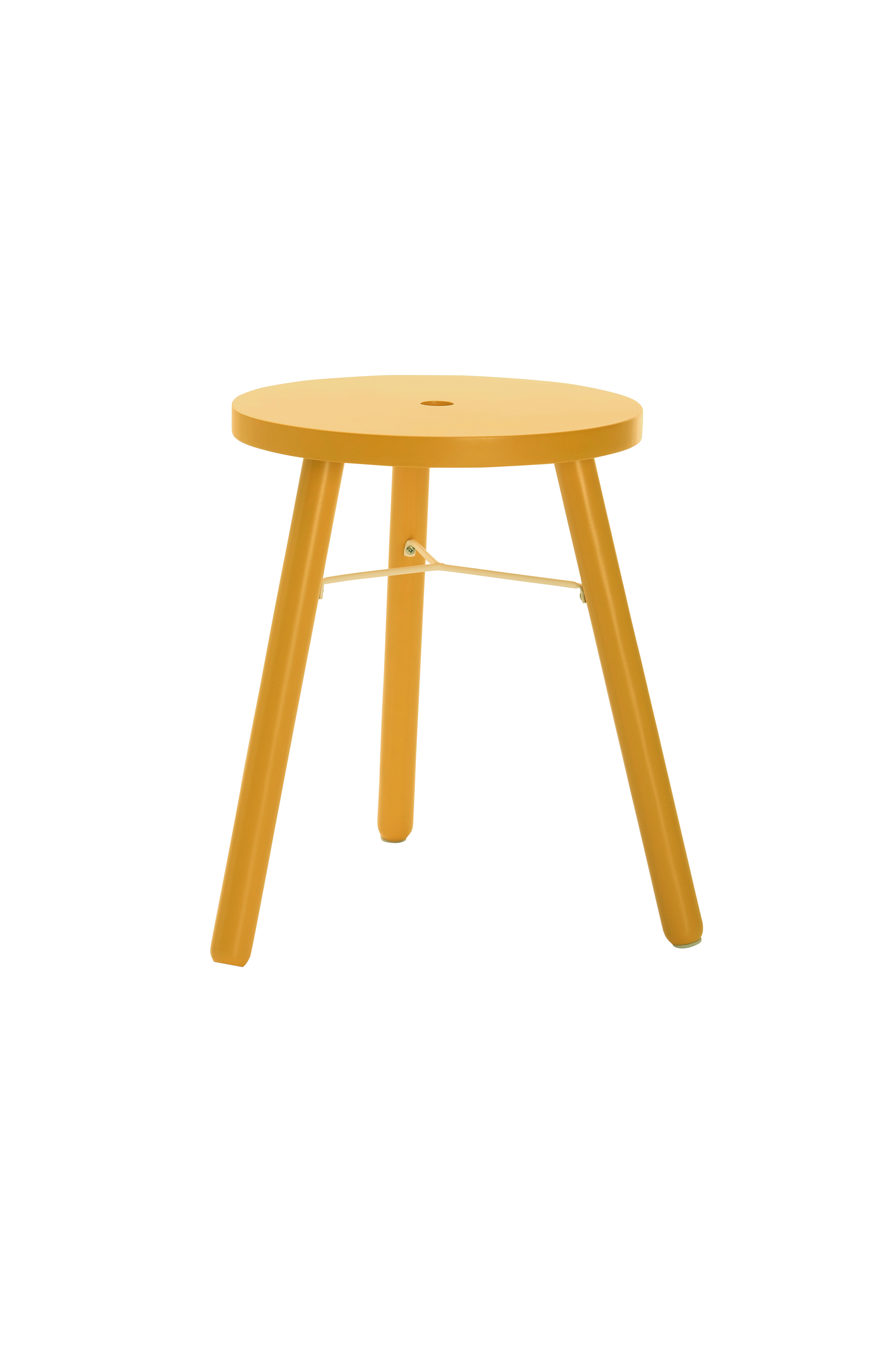 Rund skammel med ben i massivt fyrretræ og sæde i MDF. Den fint malede skammel er en stilfuld, klassisk model med skandinavisk indflydelse. Sædet har et dekorativt hul i midten. Der medfølger en metalstang, som kan monteres under sædet mellem benene, hvis det ønskes. Nogen samling påkrævet.