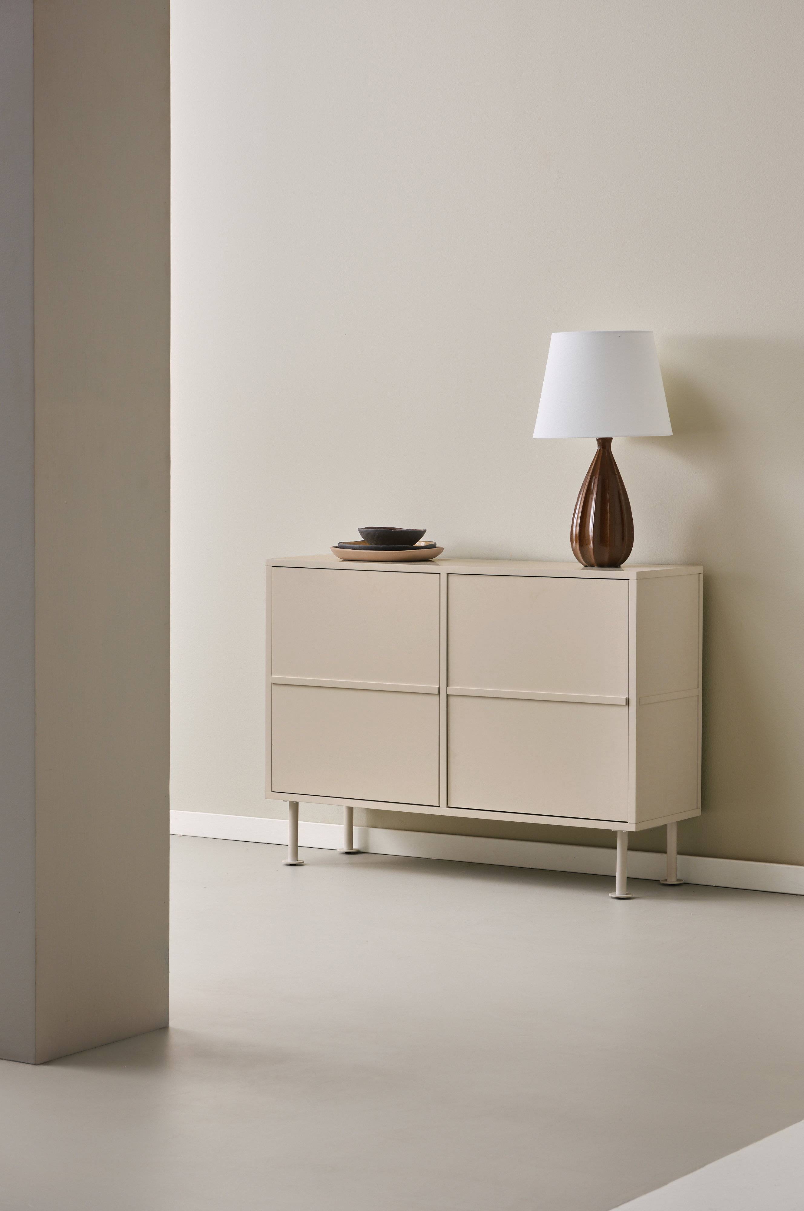 KIPP skænk forvandler dit soveværelse til et moderne vidunder med sit slanke design. Den er fremstillet af MDF og har skjult opbevaring, så rod hører fortiden til. Med 2 hylder og 2 skuffer er det en leg at organisere de vigtigste ting. KIPP-skænken, som er en del af KIPP-familien, giver et sammenhængende look til dem, der elsker trendy interiør. Løft dit rum med dette stilfulde og funktionelle møbel.