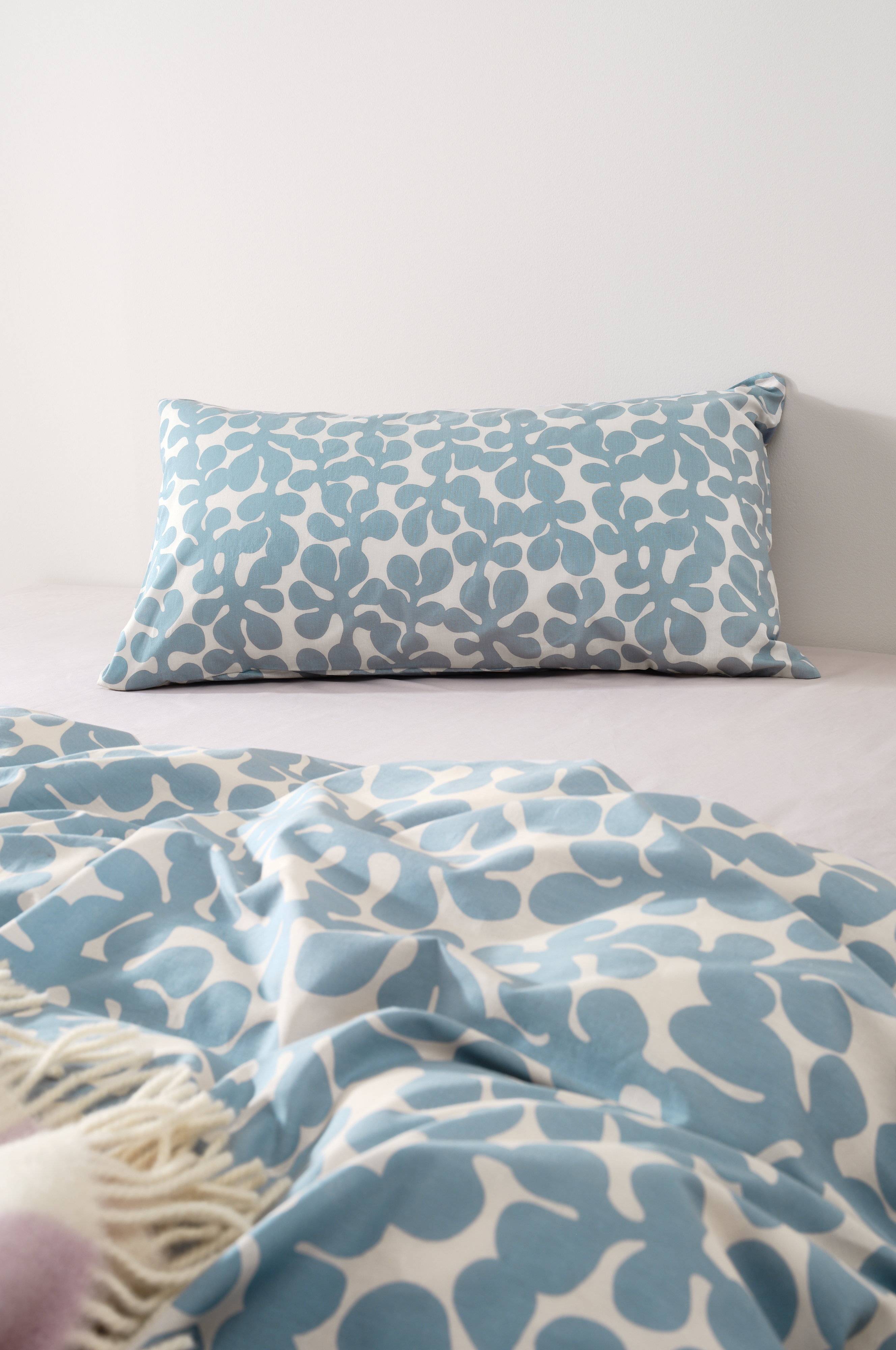 Pudebetræk designet af Maria Carlberg. Et levende, mønstret pudebetræk i økologisk bomuld med et retroinspireret mønster til et drømmende soveværelse.
