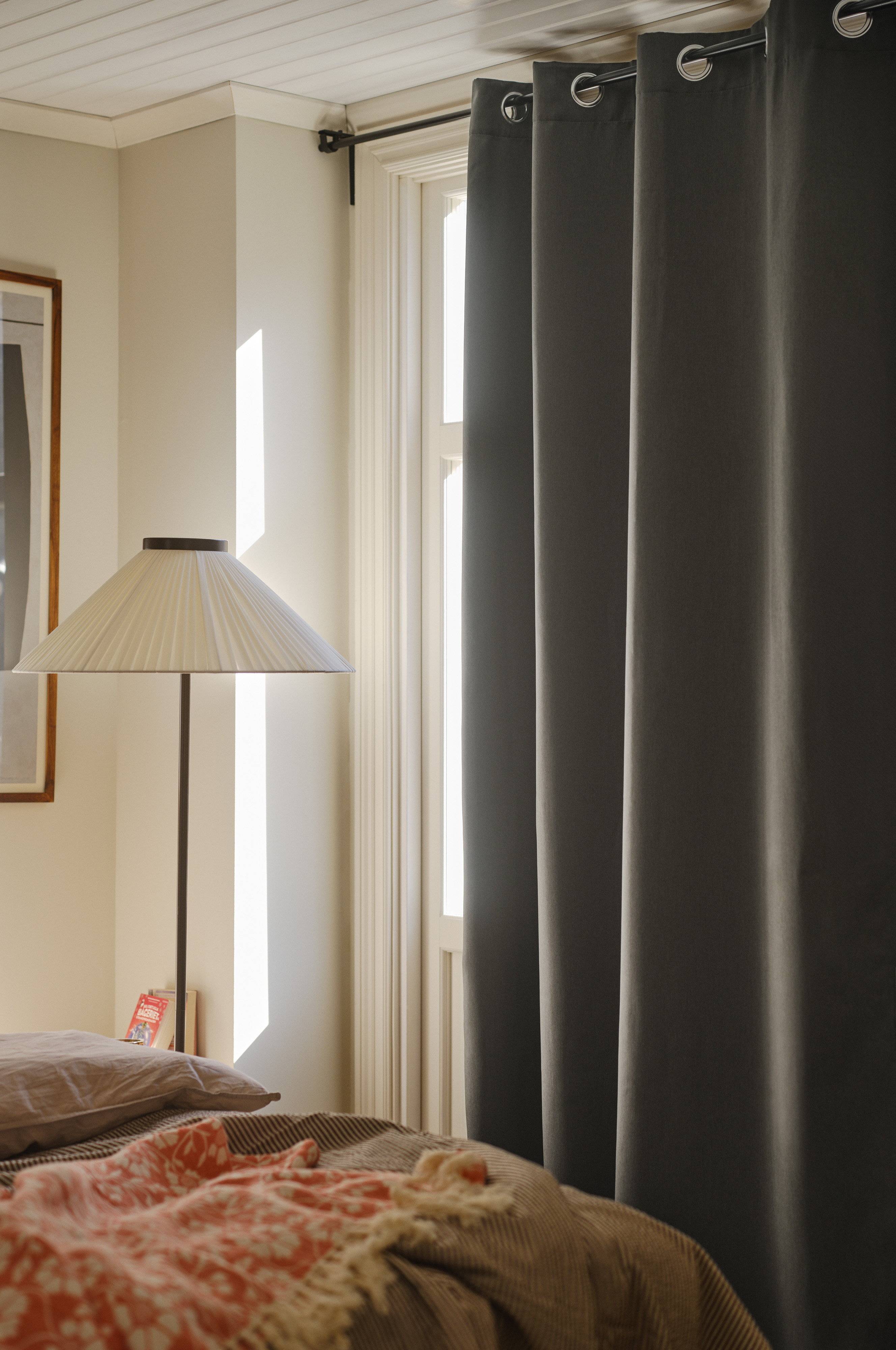 Tip/råd: I stedet for rullegardin og almindelige persienner kan du mørklægge med et mørklægningsgardin - flot og praktisk på samme tid.