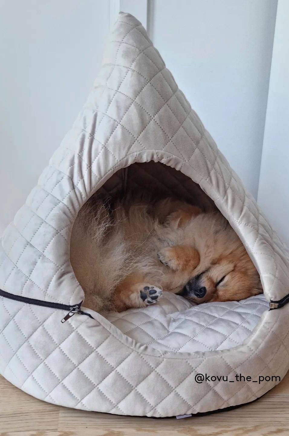 KYLO er en hyggelig katte- eller hundeseng med blød, afrundet bund som har en tyk pude til at ligge på. Taget er formet som en kegle og kan fjernes med lynlås, hvis det er nødvendigt. Yderstoffet er af velour og har ternet quiltning. Fyldet er skum af polyester. Hulen er perfekt at kravle ind i for katte og hunde, hvor de kan ligge varmt og hyggeligt. Hvis din firbenede ven er lidt kuldskær, er denne seng et perfekt valg. Sengen er vaskbar og betrækket er ikke aftageligt.