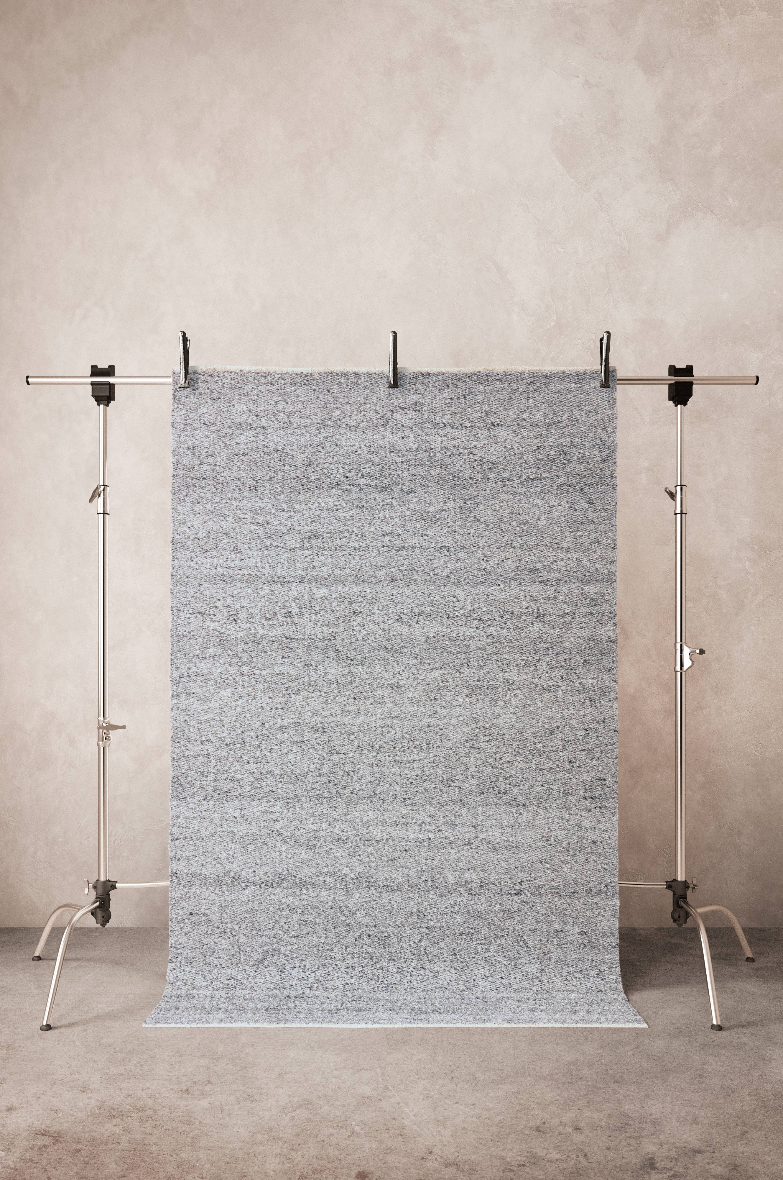 Glatvævet tæppe som er fremstillet af genindvundet polyester. Vævetekniken giver fin struktur og meleret effekt. Gulvtæppet er behageligt at gå på og har alle de egenskaber som et indendørs tæppe skal have, men kan også bruges udendørs. Det kan tåle at blive fugtigt uden at mugne, hvilket er en fantastisk fordel ved materialet. Længde på frynser 5 cm. Tykkelse 0,7 cm. 2300 g/m².