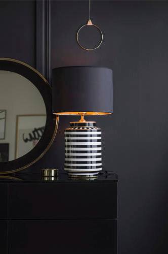 Lampefod i glaseret keramik. Match med en skærm med guldfarvet inderside for et eksklusivt udtryk eller måske med en velourskærm. Højde 43 cm og diameter 22 cm. Kan ikke dæmpes. Pære medfølger ikke. Ledningslængde 2 meter.