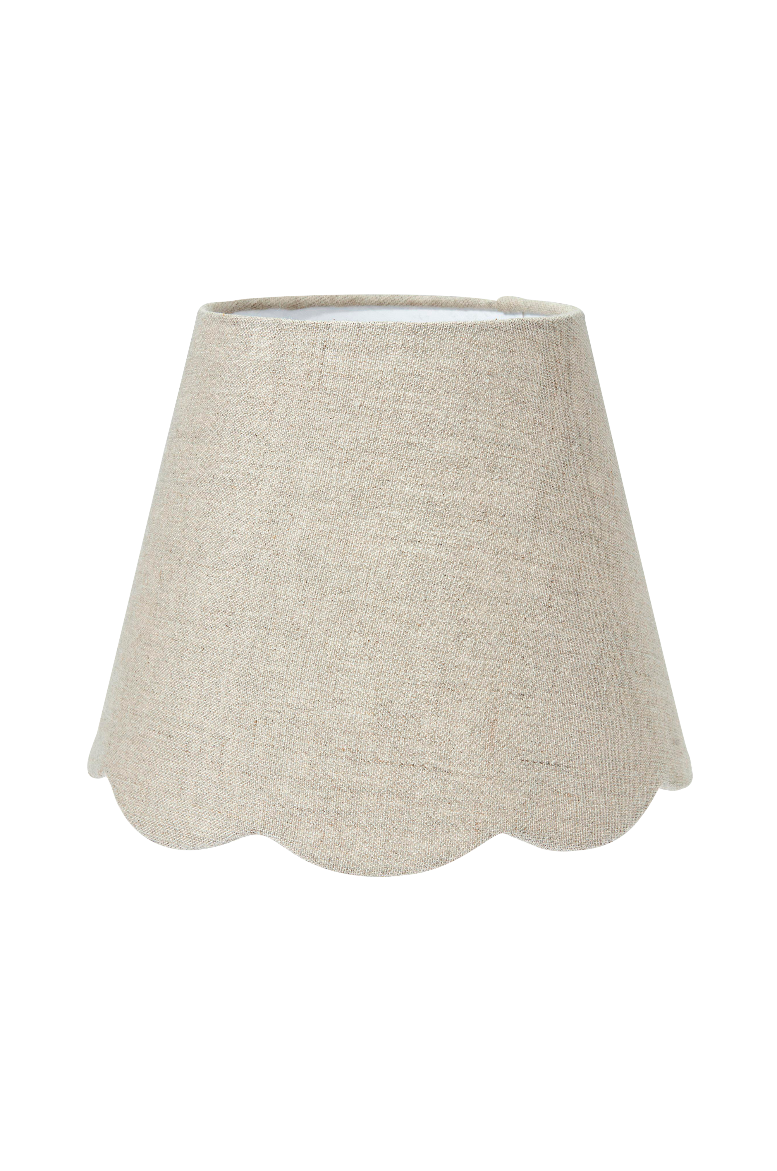 Jasmine lampeskærm er i et hørstof med fin struktur. Skærmen er let A-formet og har en bølget form forneden. E27 holder.