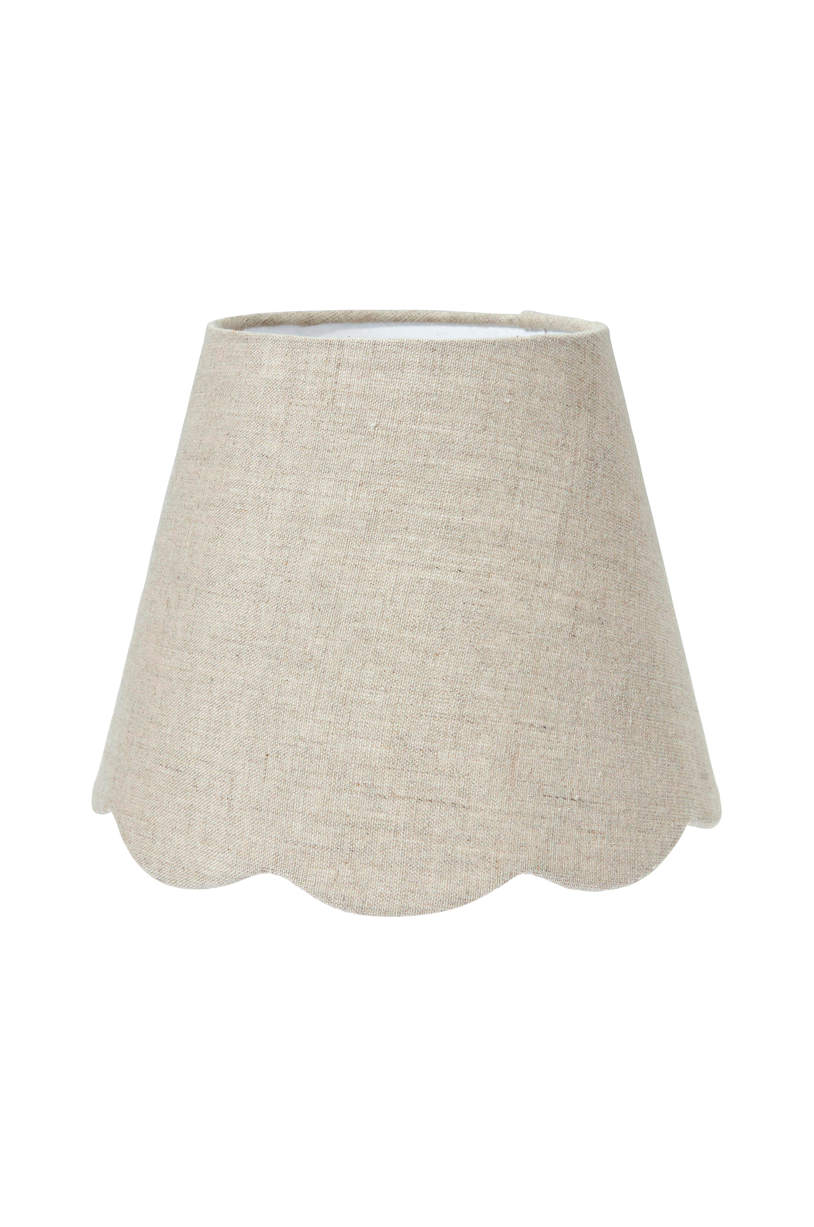 Jasmine lampeskærm er i et hørstof med fin struktur. Skærmen er let A-formet og har en bølget form forneden. E27 holder.