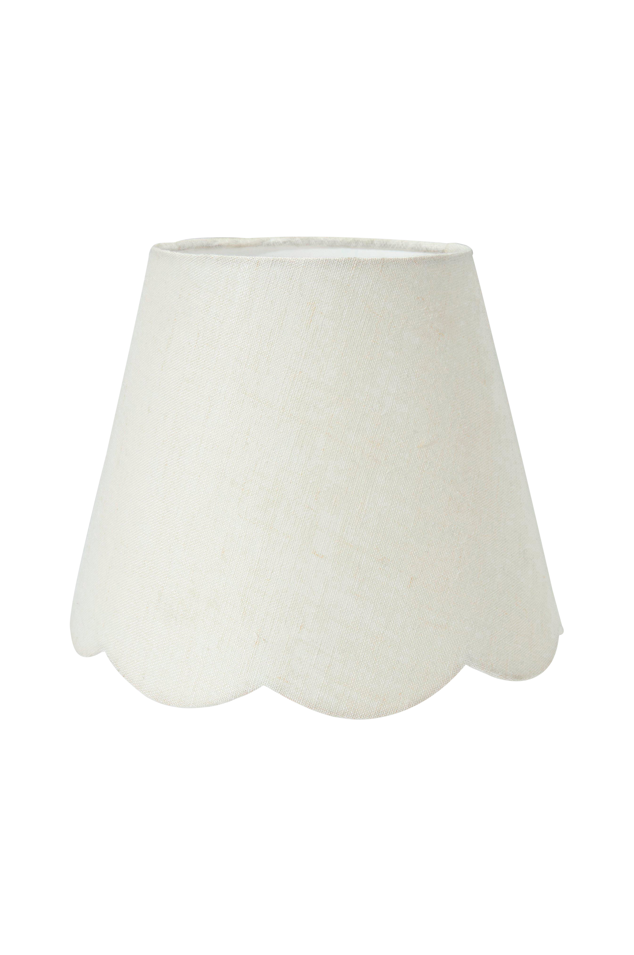 Jasmine lampeskærm er i et hørstof med fin struktur. Skærmen er let A-formet og har en bølget form forneden. E27 holder.