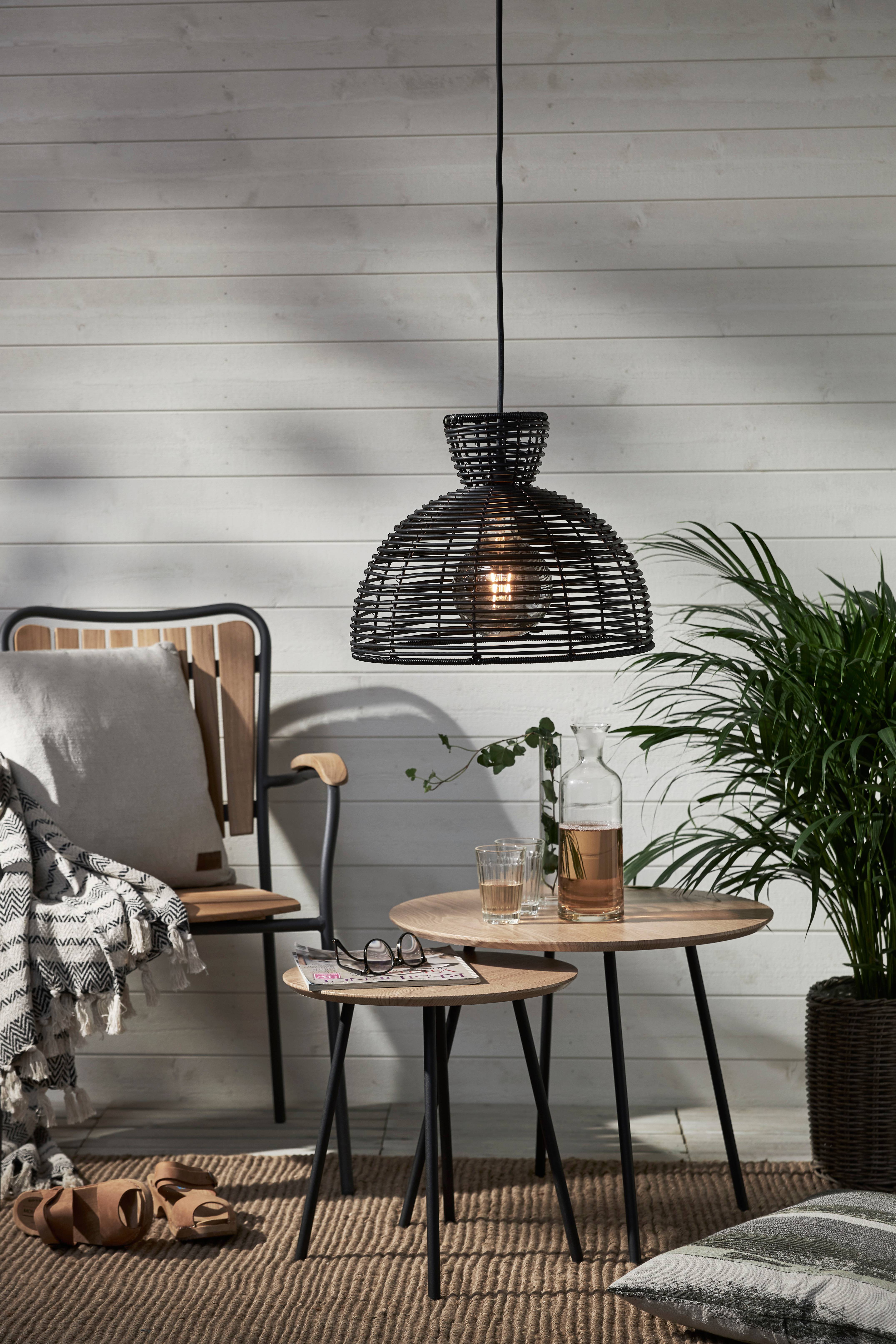 Lampeskærm i kunstrotting til udendørs brug. Bredde 37 cm og højde 29,5 cm. Mix og match med udendørsophæng og lyskilder (medfølger ikke). Velegnet til ophæng med E27 sokkel.