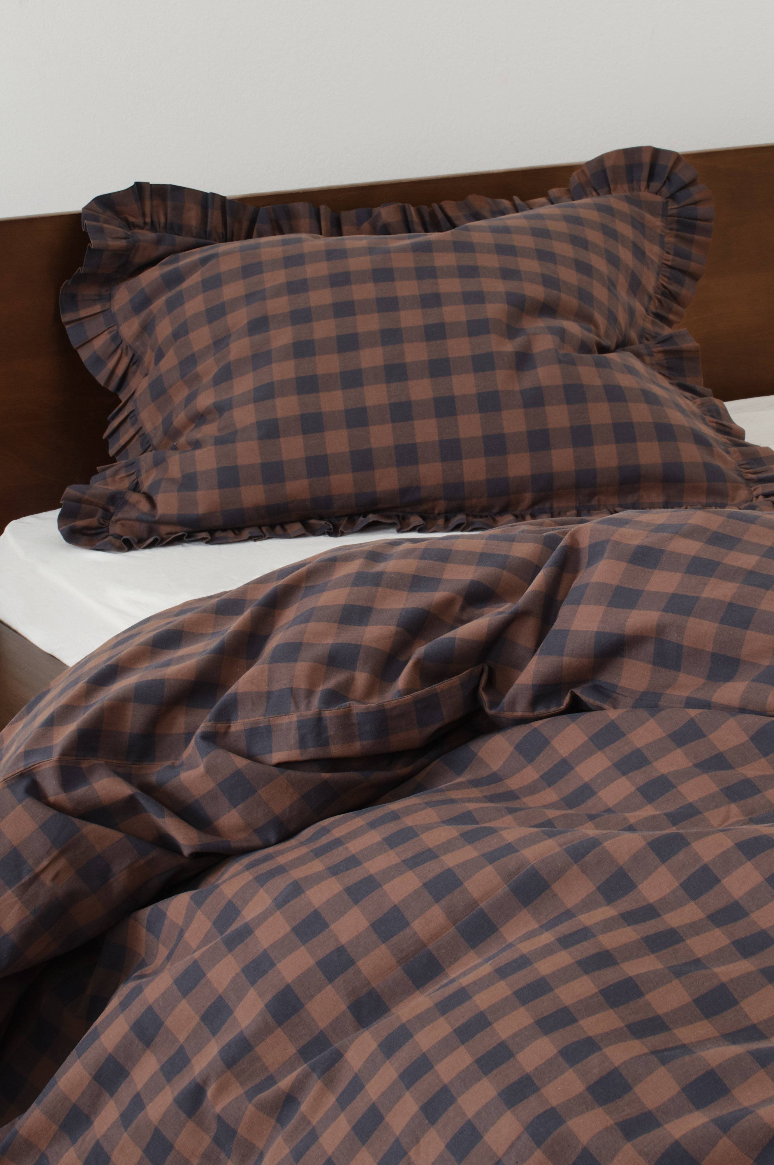 Dette flæsepudebetræk med ternmønster sætter prikken over i'et på sengen.