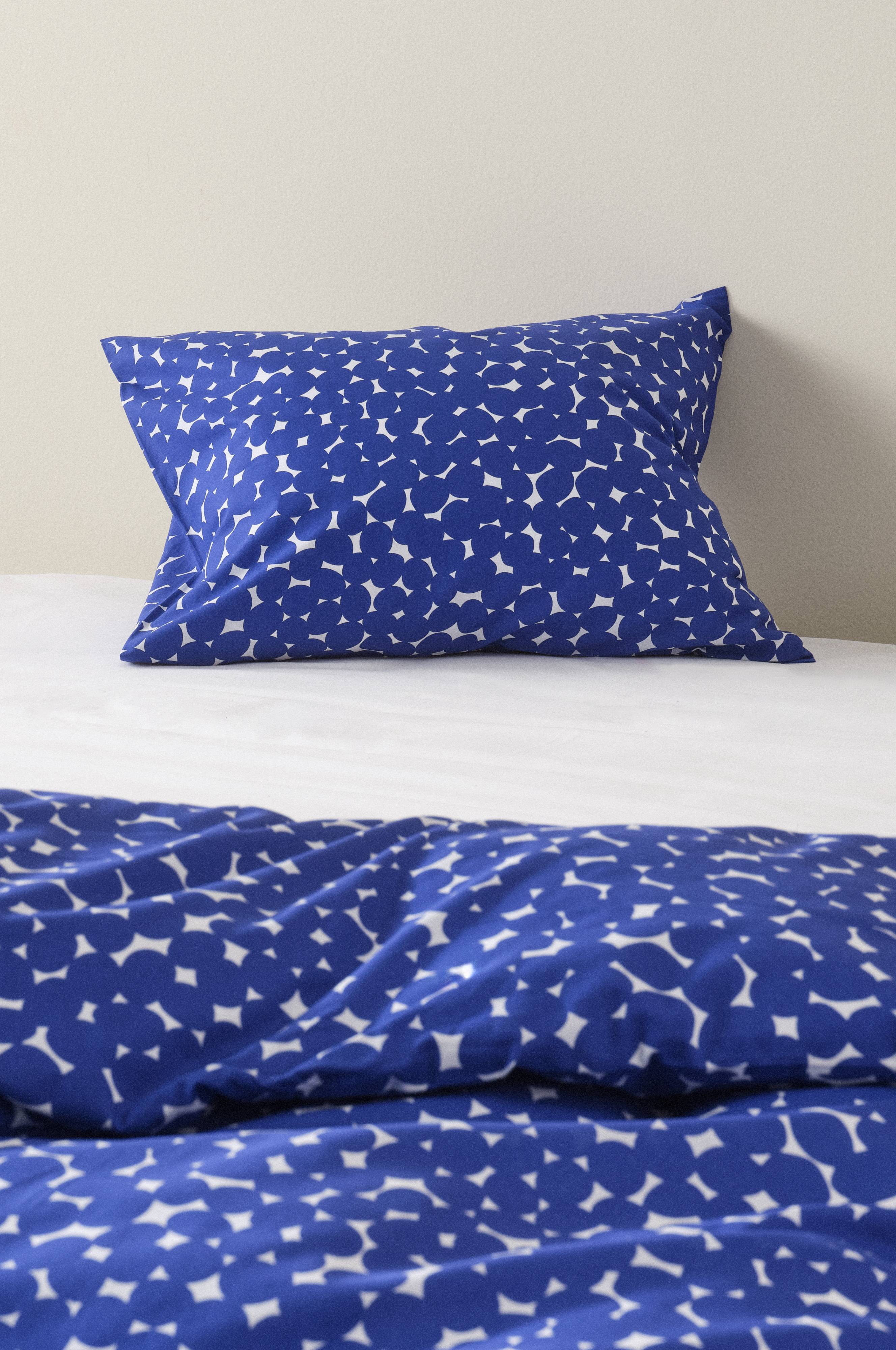 1-pak pudebetræk i skøn bomuld med printede prikker i et tæt mønster. Bomuld er en kølig og frisk kvalitet som føles behagelig mod huden. Trådtæthed 144 TC. (Trådtætheden angiver antal tråde, Thread Count, pr. kvadrattomme i et stof. Jo højere trådtæthed desto højere kvalitet.)