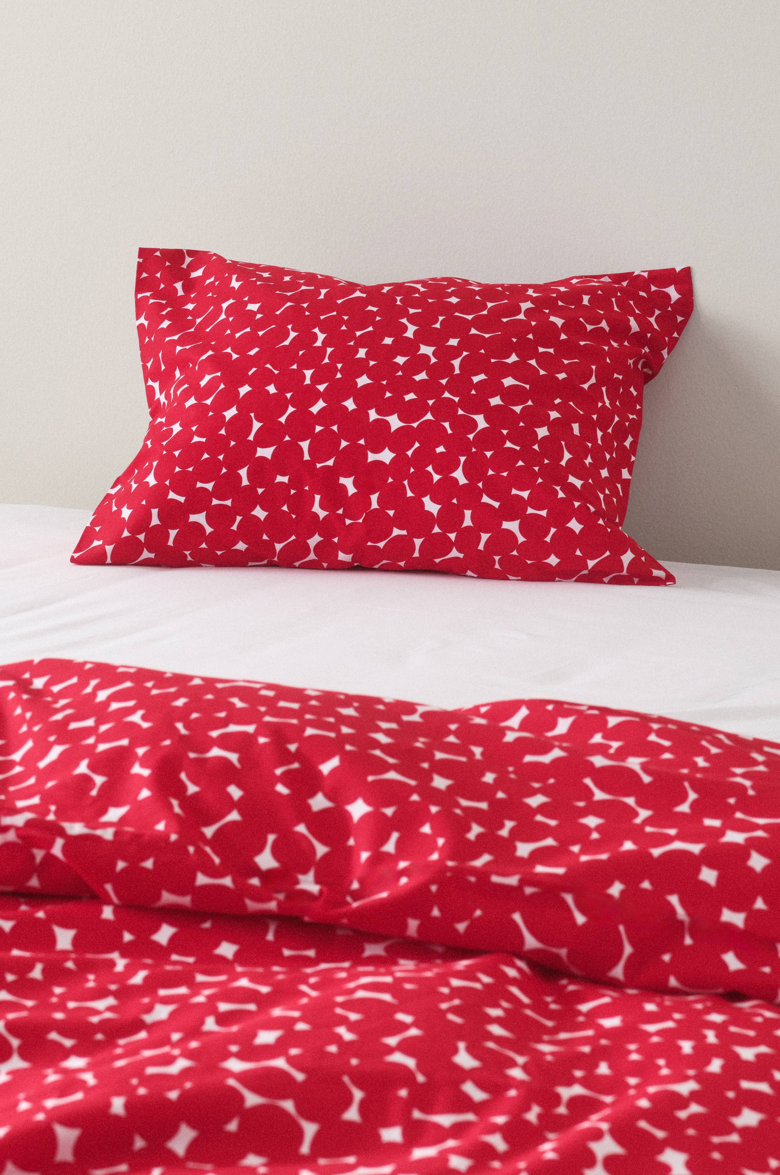 1-pak pudebetræk i skøn bomuld med printede prikker i et tæt mønster. Bomuld er en kølig og frisk kvalitet som føles behagelig mod huden. Trådtæthed 144 TC. (Trådtætheden angiver antal tråde, Thread Count, pr. kvadrattomme i et stof. Jo højere trådtæthed desto højere kvalitet.)