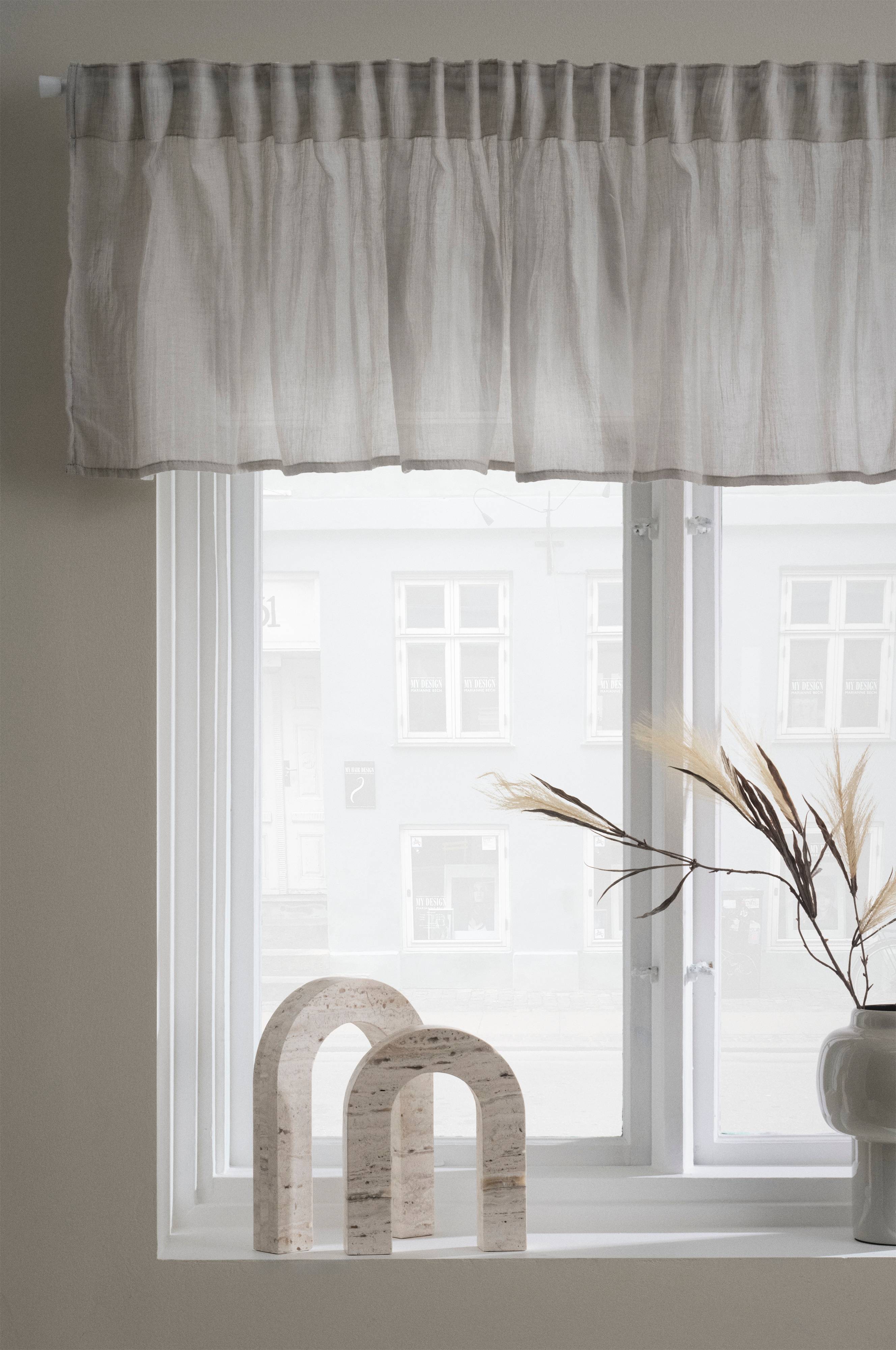 Gardinkappe i let og luftig kvalitet af polyester/bomuld som falder let. Kappen har påsyet multifunktionsbånd foroven og kan hænges op med fingerkroge, løbegang samt skjulte stropper.