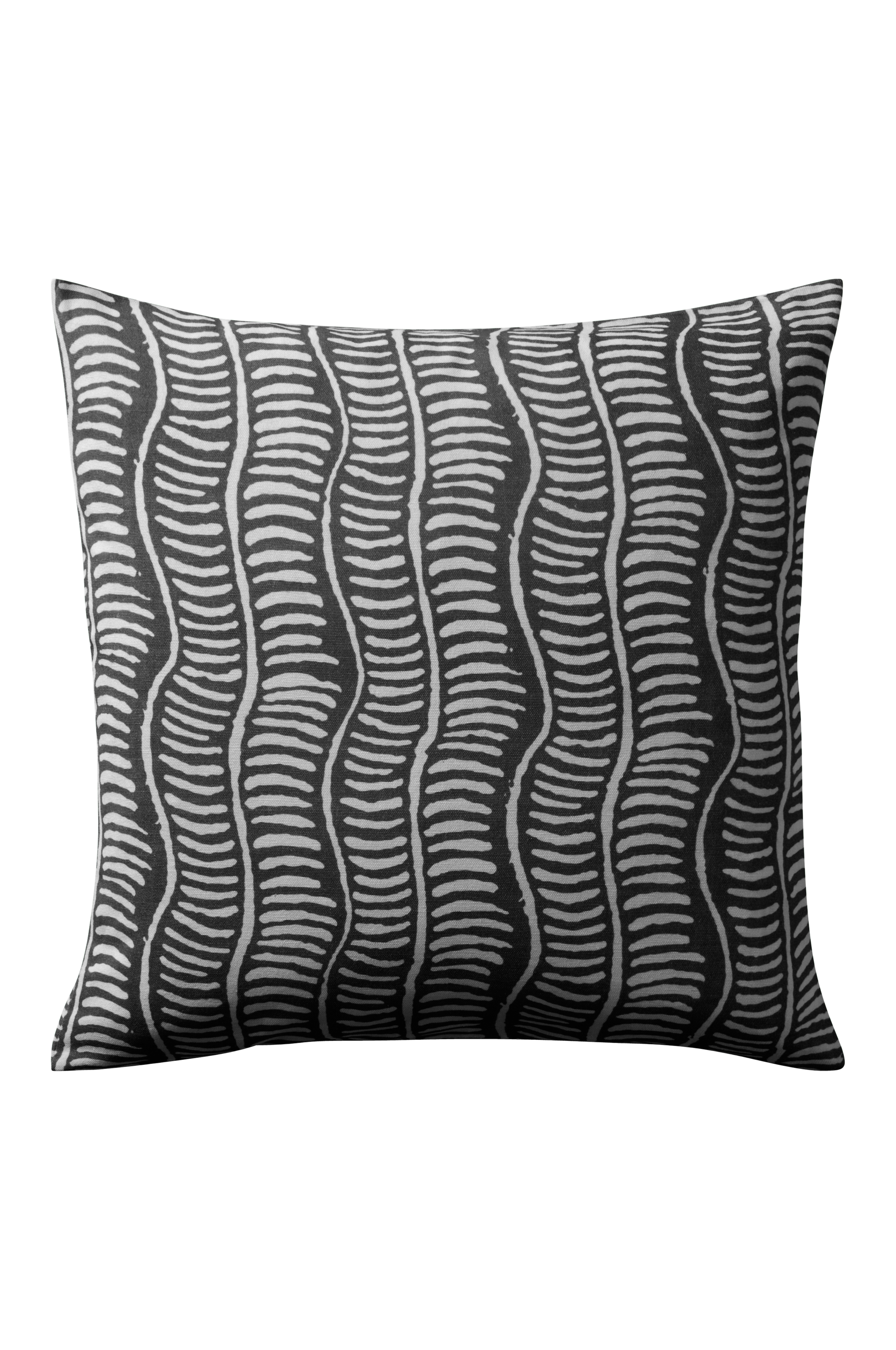 1-pak pudebetræk af mønsterprintet bomuldsstof med bølget striber. Lynlås i kant forneden.