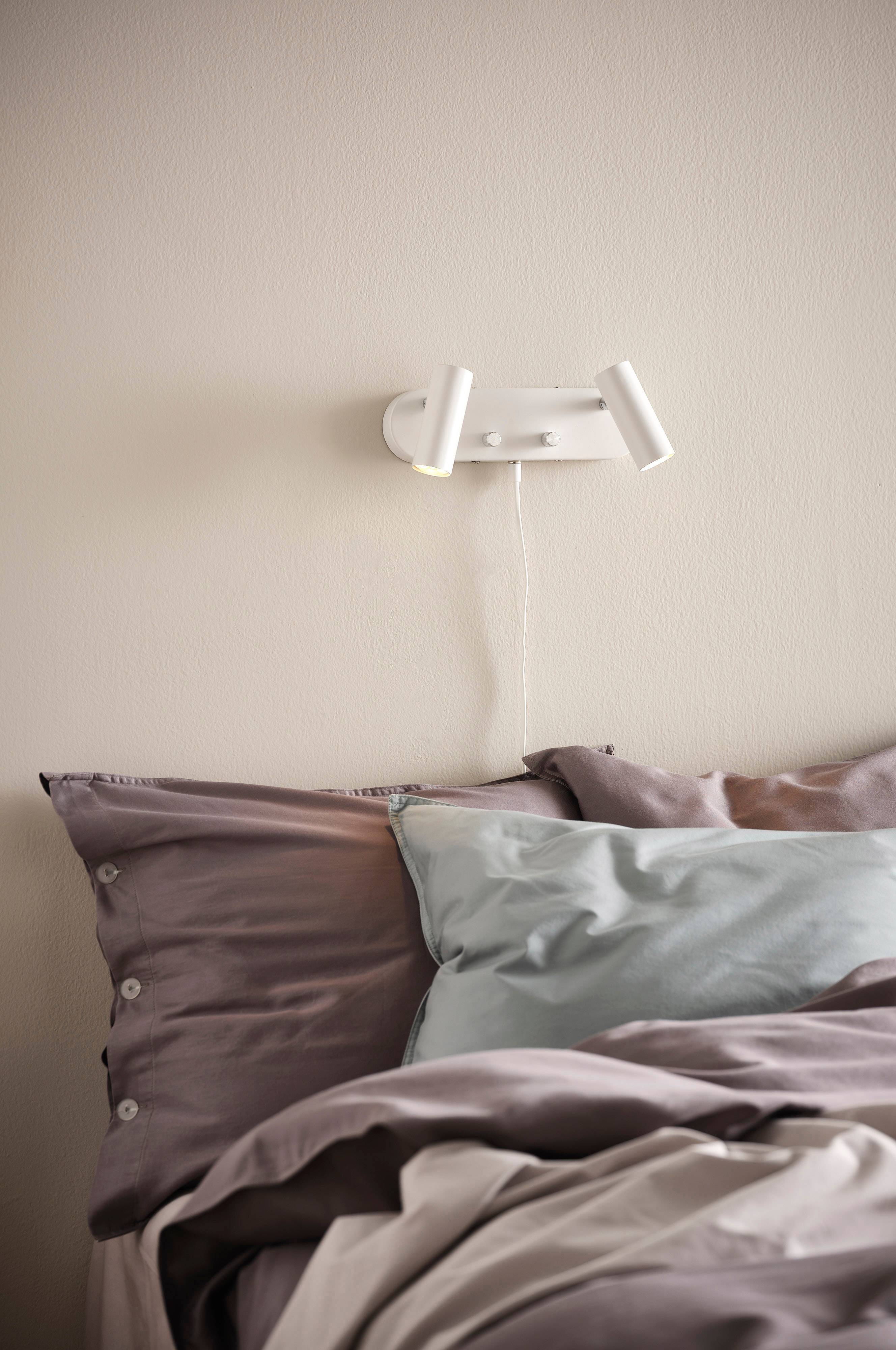 Fin sengelampe med to individuelle lyskilder. Trinløs regulering af lysstyrken.