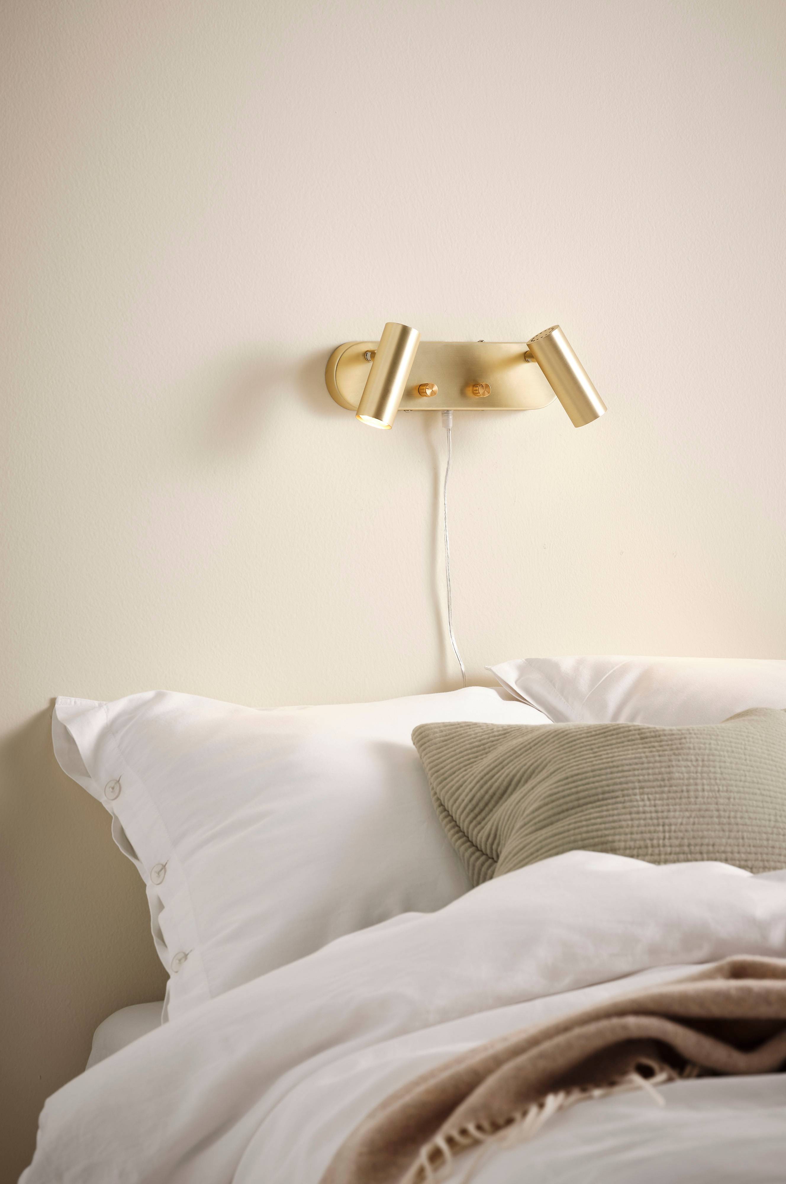 Fin sengelampe med to individuelle lyskilder. Trinløs regulering af lysstyrken.