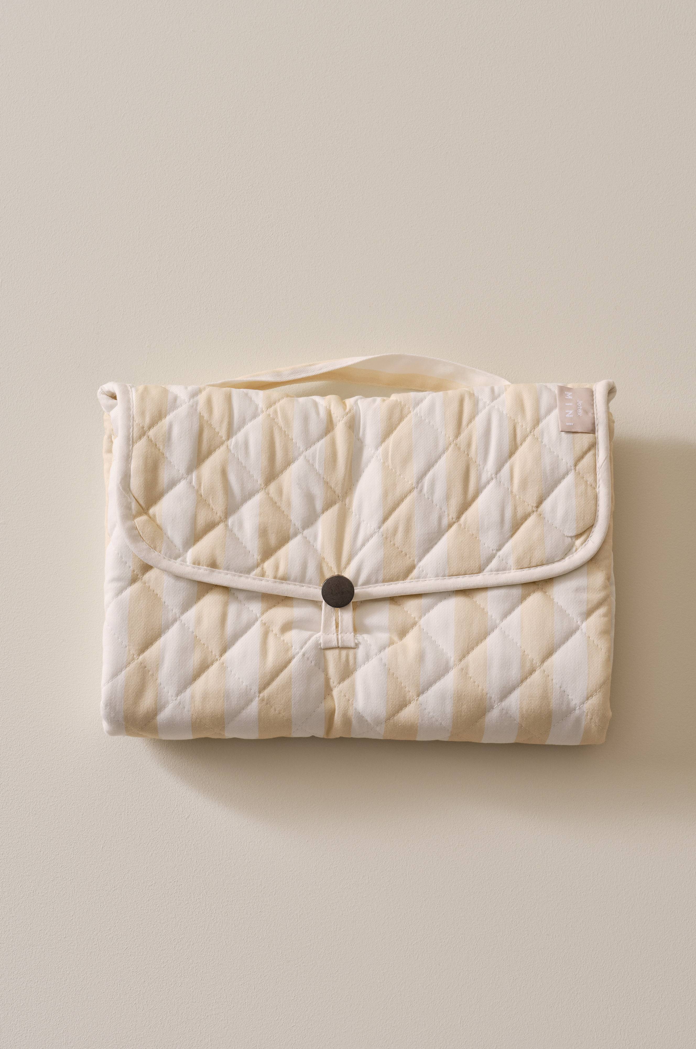 LENI pusleunderlag er stilfuldt og alsidigt. Den kan foldes sammen og har et håndtag, så den er perfekt til hjemmet eller på rejser. Fastgøres med strop og knap. Indeni finder du seks lommer (14x21 cm) og en bundlomme (26X18 cm), perfekt til at organisere babyens vigtigste ting. Fremstillet af bomuld med vandafvisende belægning og quiltning i polyester. Nem at vaske i hånden.
