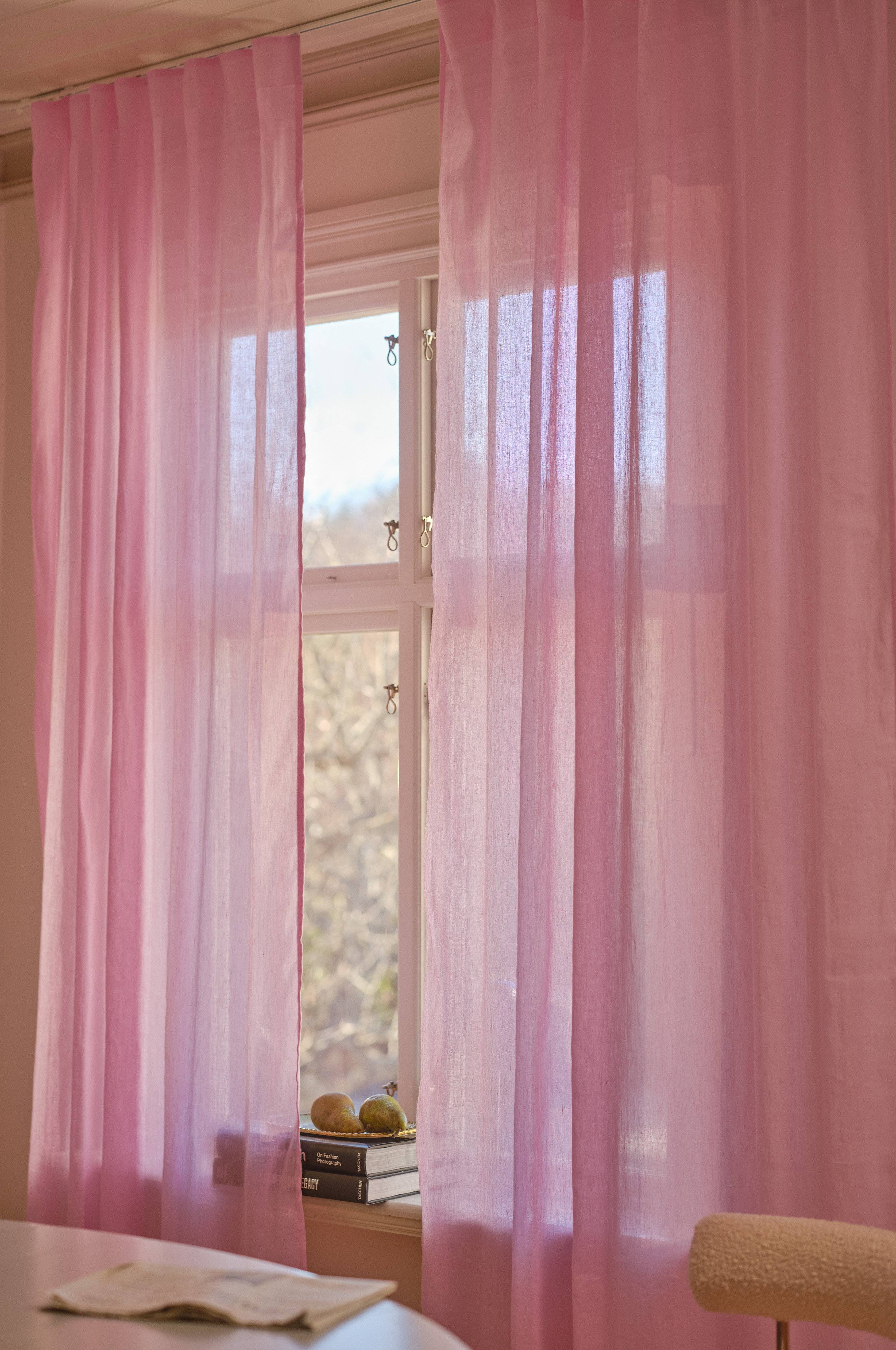 Gardinens længde kan variere en smule ved levering, da naturmaterialer som hør påvirkes mere af temperaturen end syntetiske materialer. En variation på 1-2 cm fra de angivne mål er helt naturlig.