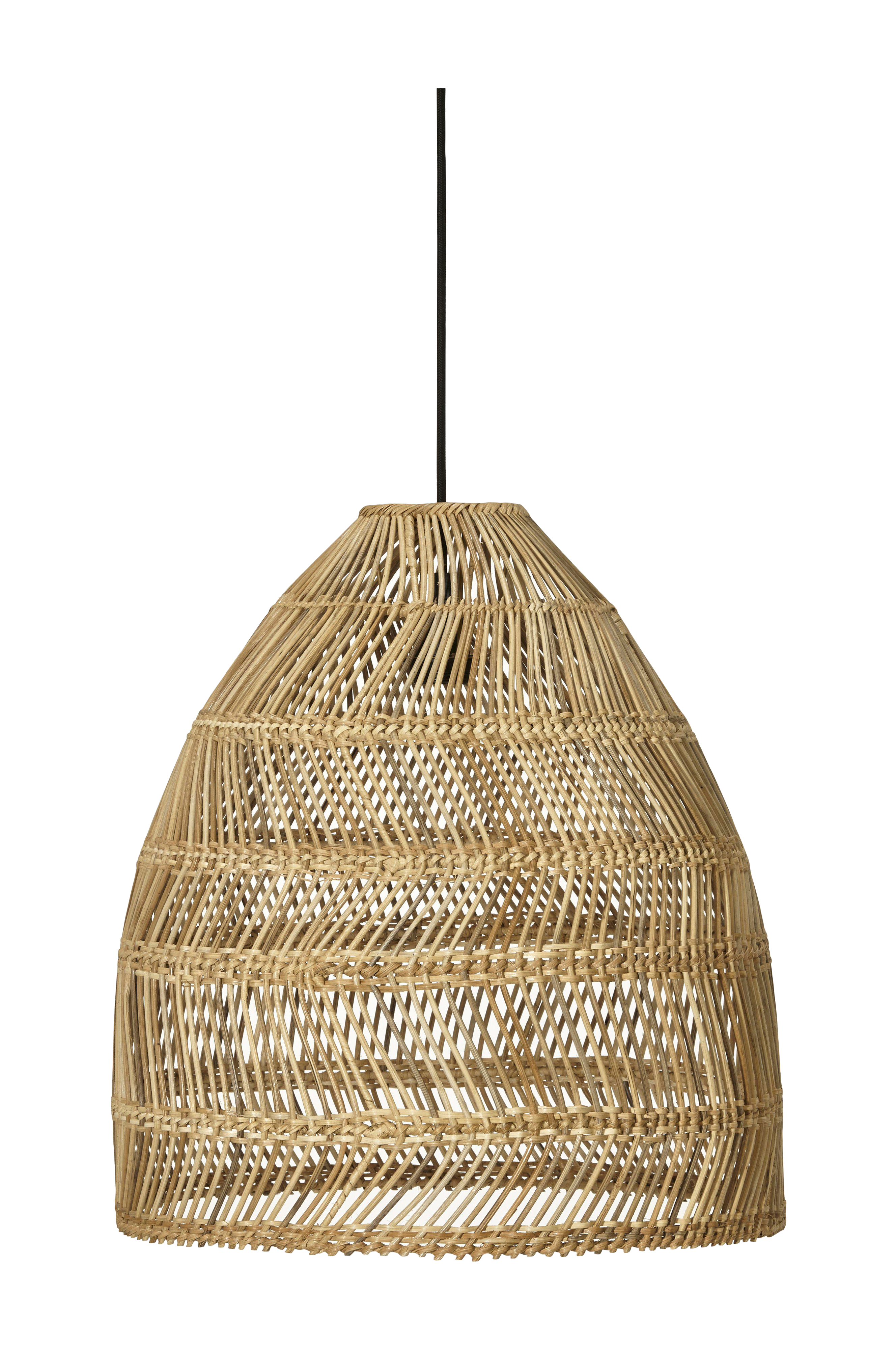 Maja loftlampe i smuk, snoet naturrotting. Passer lige godt udendørs, i drivhuset og udestuen som indendørs. Leveres med sort Flex Out udendørskabel 2,5 meter med E27-fatning, maks. 15W. Bemærk at den er af naturmateriale og at vejr og vind kan påvirke dens udseende. Da skærmen er fremstillet i hånden kan små afvigelser i størrelsen forekomme. Mål: Højde 34 cm, bredde 36,5 cm og dybde 36,5 cm.