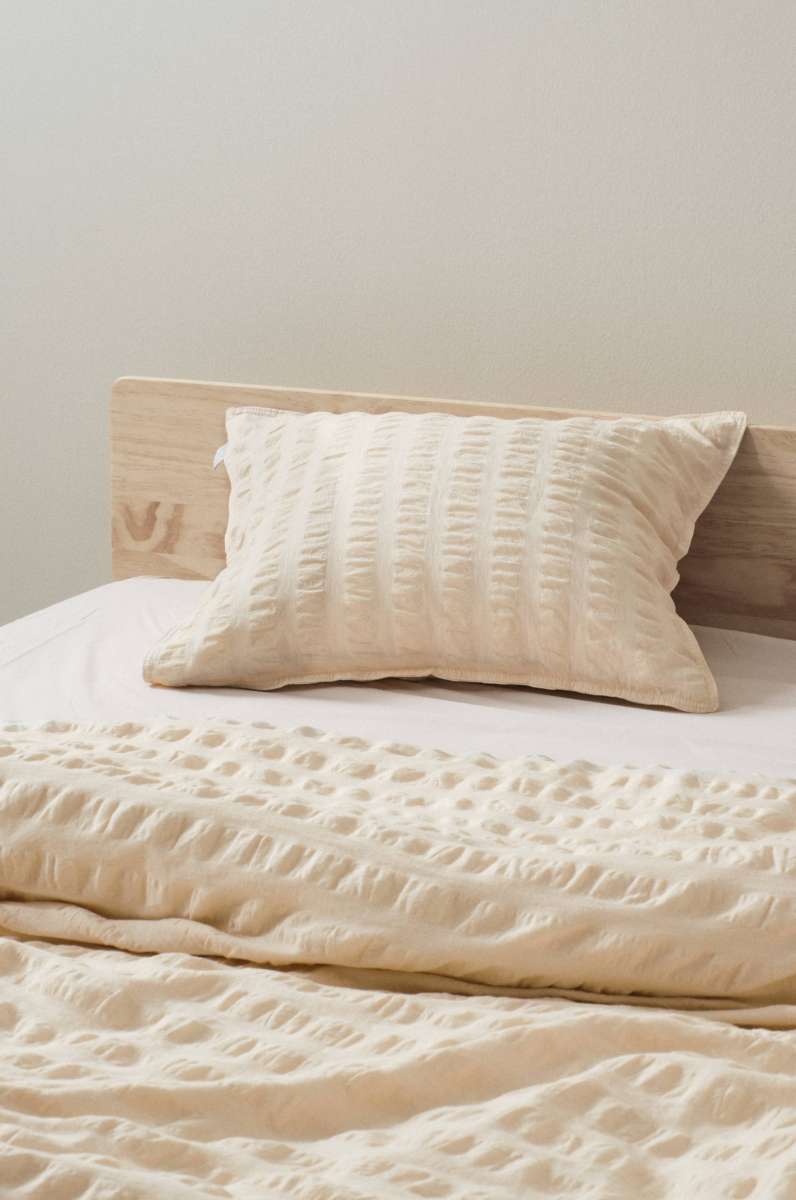 1-pak pudebetræk i skøn bæk og bølge af certificeret, økologisk bomuld. Bæk og bølge er en luftig kvalitet og stoffets boblestruktur føles svalt og behageligt. Serien LOLO er ensfarvet og samtidigt stribet, glat stof blandet med striber i bæk og bølge. Stoffet er garnfarvet og vasket for at få et blødere udtryk. Trådtæthed på 120 tc. (Trådtætheden angiver antal tråde, Thread Counts, pr. kvadrattomme i et stof. Jo højere trådtæthed desto højere kvalitet.)
