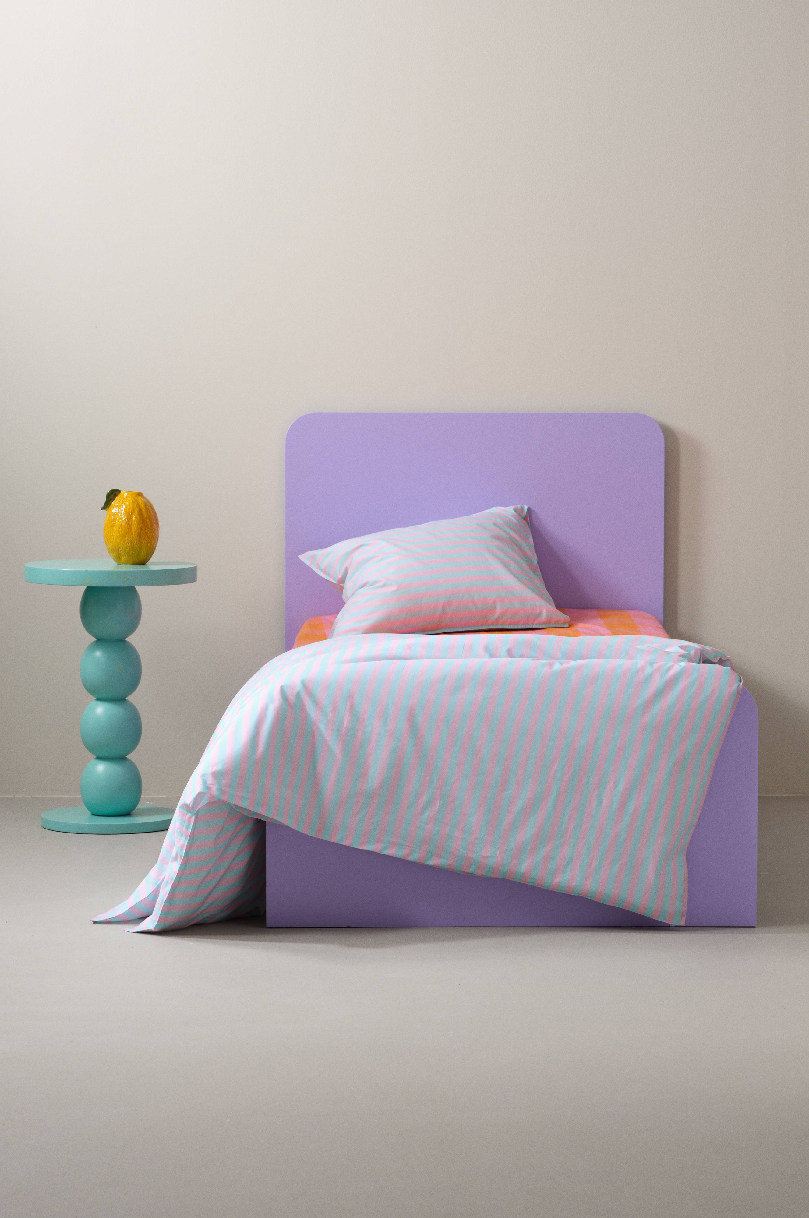 Stribet sengesæt i to dele med et dynebetræk og et pudebetræk af økologisk bomuld. Sengetøj i serien LOUSA er farvestrålende og striberne er digitalprintet, hvilket giver et blødere og mere distinkt print med klarere farvegengivelse. Økologisk bomuld er skønt at sove i, køligt og blødt mod huden. Åbning i de øverste hjørner på dynebetrækket, så det er nemt at trække dynebetrækket over dynen. Trådtæthed på 180 tc. (Trådtætheden angiver antal tråde, Thread Counts, pr. kvadrattomme i et stof. Jo højere trådtæthed desto højere kvalitet. Dog undtaget hør, der ofte væves løsere for at få det rette udtryk.)