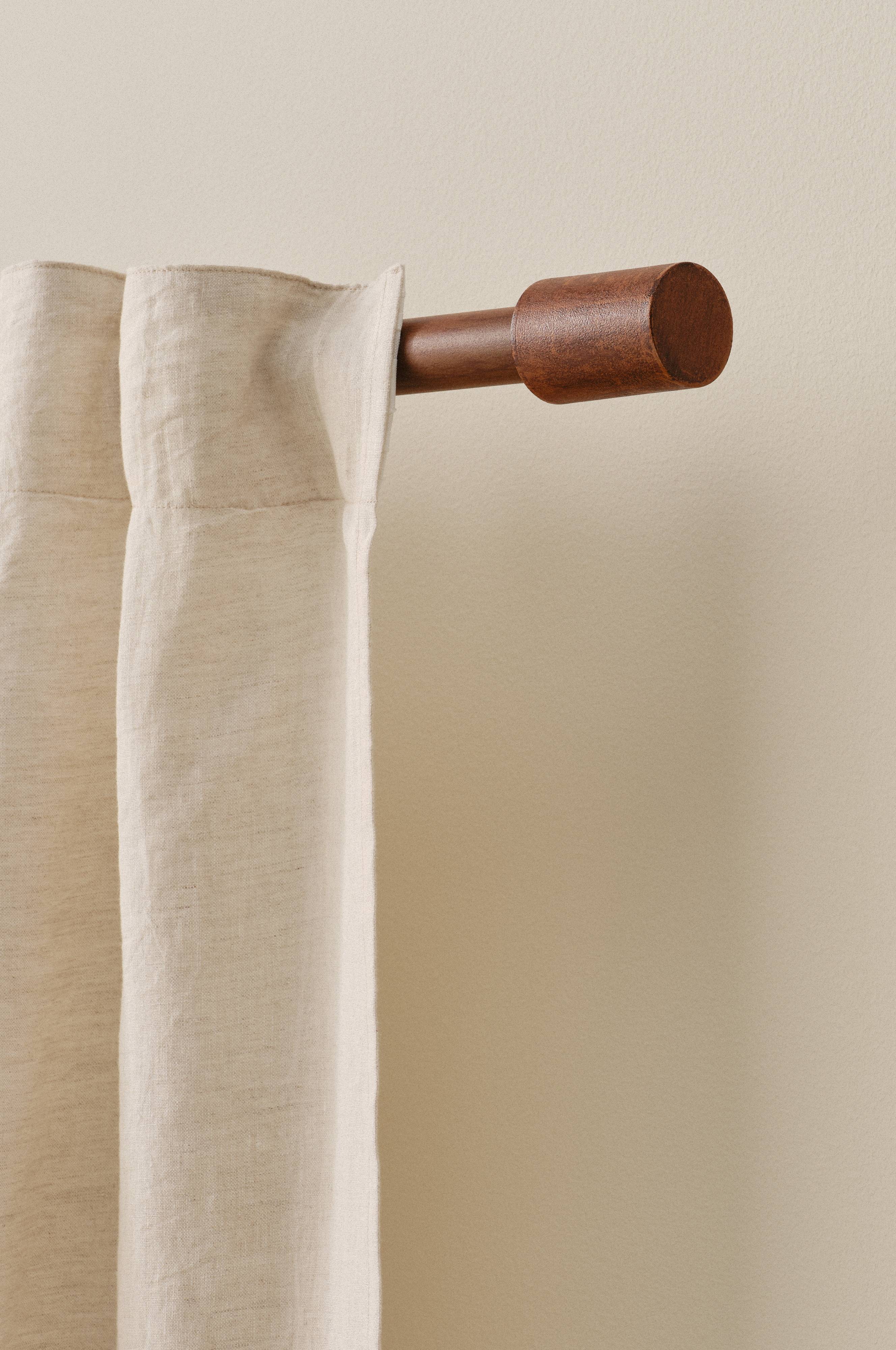 LOVA er et komplet gardinstangssæt i et flot trælook, der blander stil med funktionalitet. Denne gardinstang er fremstillet af stål og suppleres af beslag og endeknopper i aluminium, hvilket giver en klassisk elegance til ethvert interiør. Den justerbare længde sikrer, at den passer perfekt til forskellige vinduesstørrelser, så der ikke er behov for nøjagtige standardmål. Løft dit rum med LOVAs tidløse design.