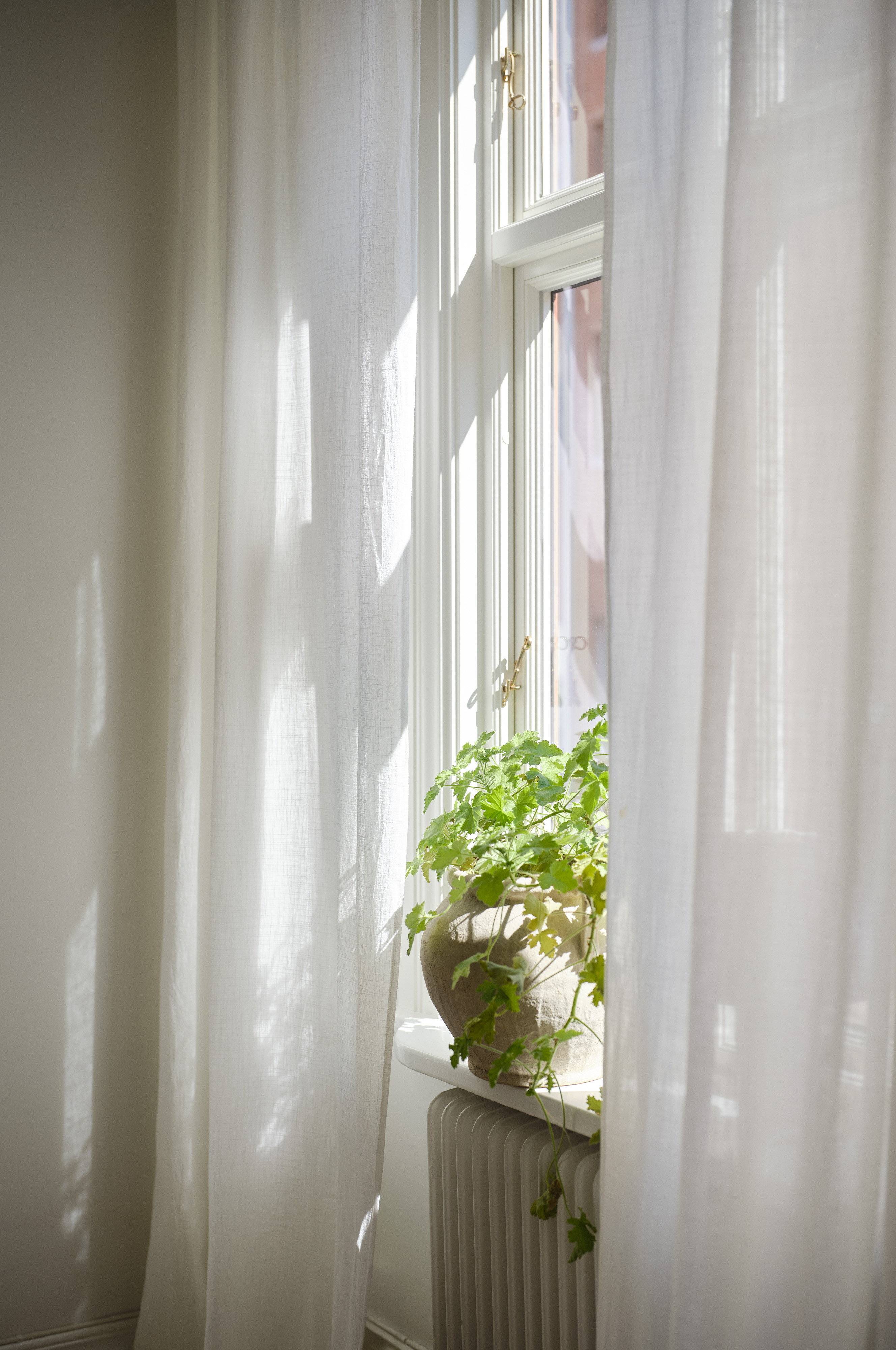 Forlæng gardinernes levetid ved at støvsuge dem forsigtigt med et blødt mundstykke med jævne mellemrum. På den måde undgår du at støv og snavs trænger ind i stoffet. Desuden holder dine gardiner farven længere. Pletter fjernes med varmt vand på en lys klud. Dup pletten forsigtigt med kluden, steam og lad tørre.
