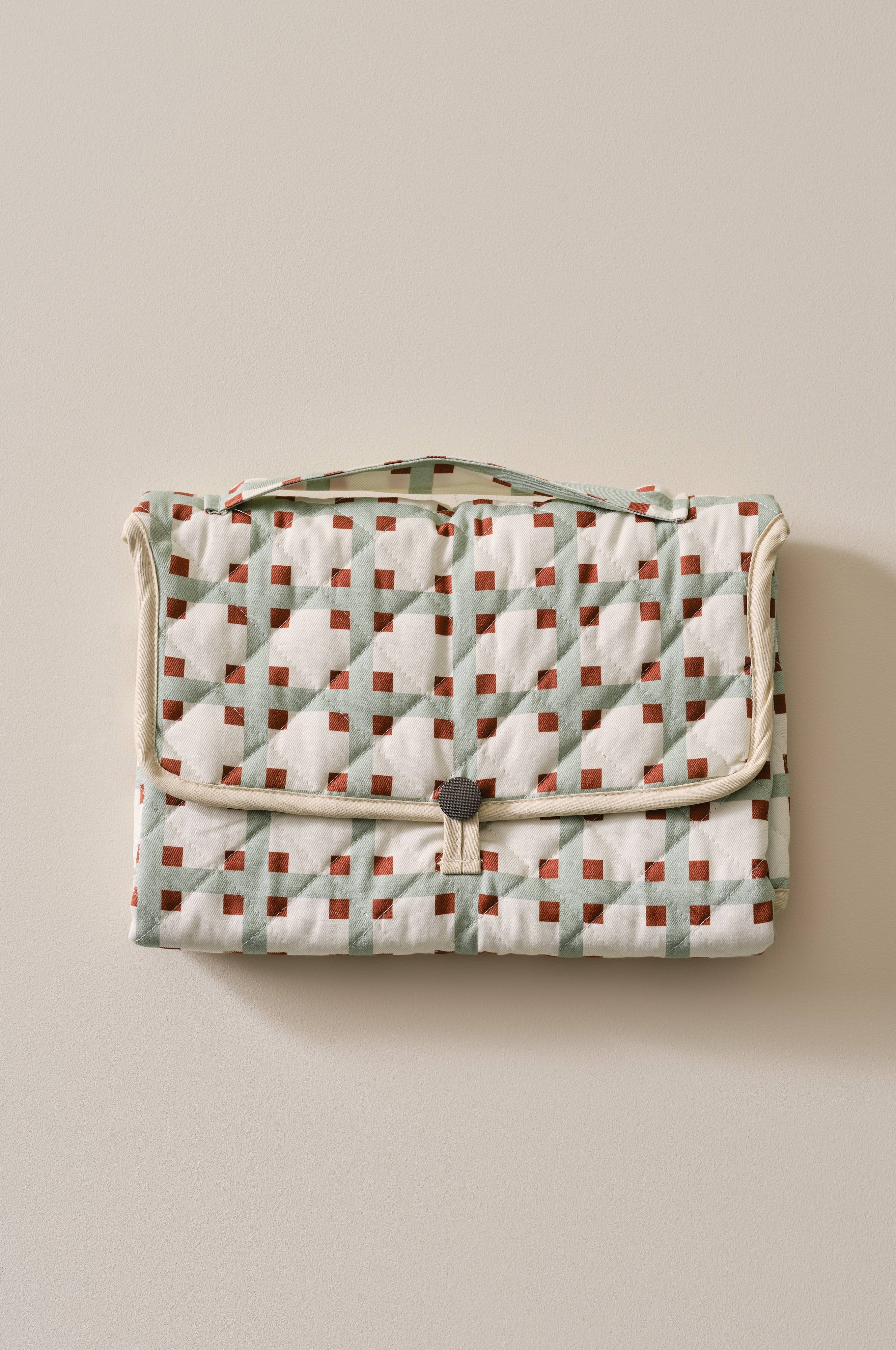 Pusleunderlaget LUTZ er stilfuldt og alsidigt. Den kan foldes sammen og har et håndtag, så den er perfekt til hjemmet eller på rejser. Fastgøres med strop og knap. Indeni finder du seks lommer (14x21 cm) og en bundlomme (26X18 cm), perfekt til at organisere babyens vigtigste ting. Fremstillet af bomuld med vandafvisende belægning og quiltning i polyester. Nem at vaske i hånden.