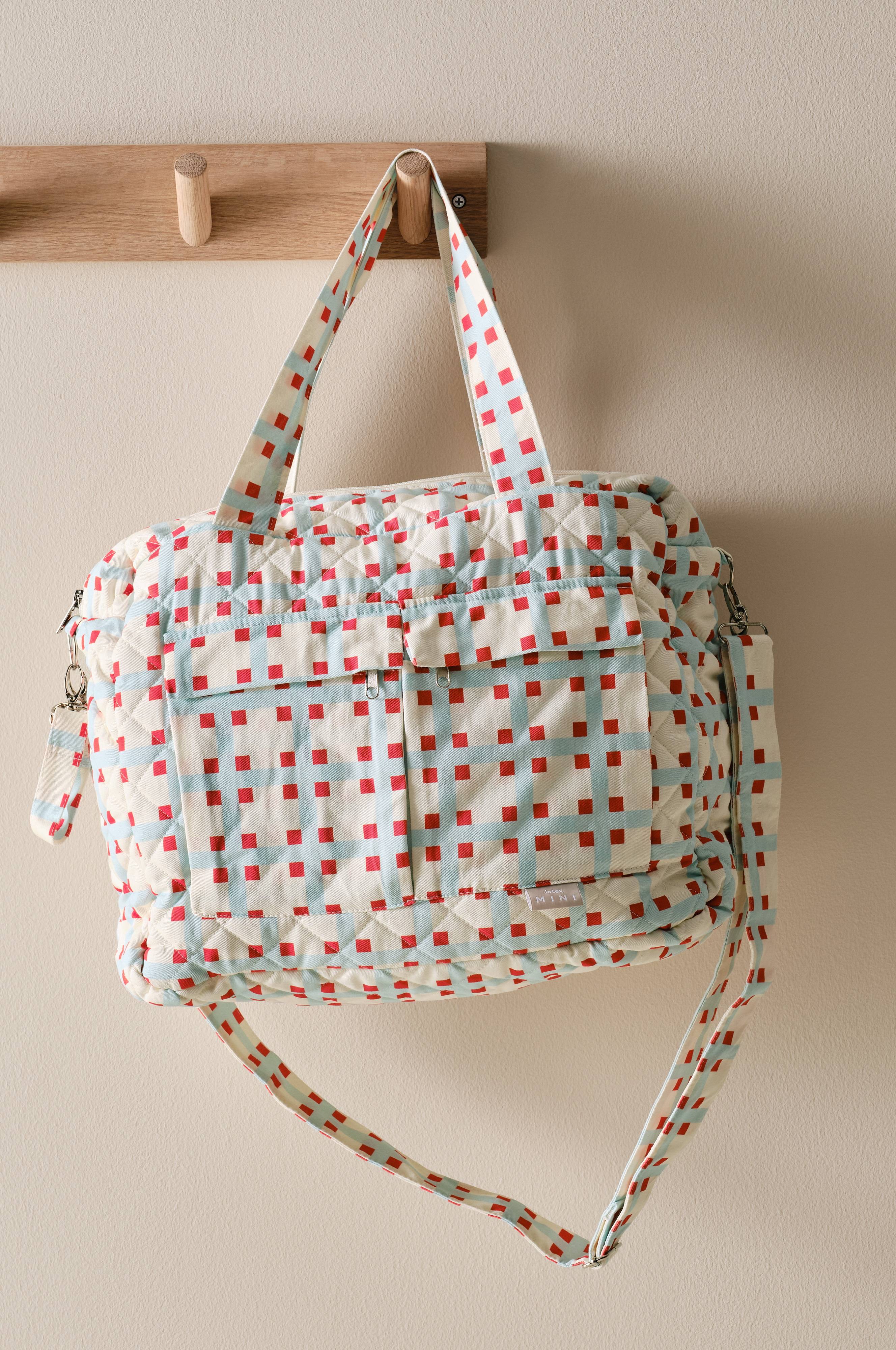 LUTZ' mønstrede pusletaske er en perfekt blanding af funktion og stil. Nem adgang, når den hænger på barnevognen. To lynlåslommer foran og fire skjulte, åbne lommer indeni. Fremstillet af bomuld med vandafvisende belægning. Har to ikke-aftagelige håndtag og en justerbar rem til alsidig brug. Ekstra stropper med kroge øger bekvemmeligheden og sikrer, at alle vigtige ting er inden for rækkevidde. Ideel til komfortable forældre.