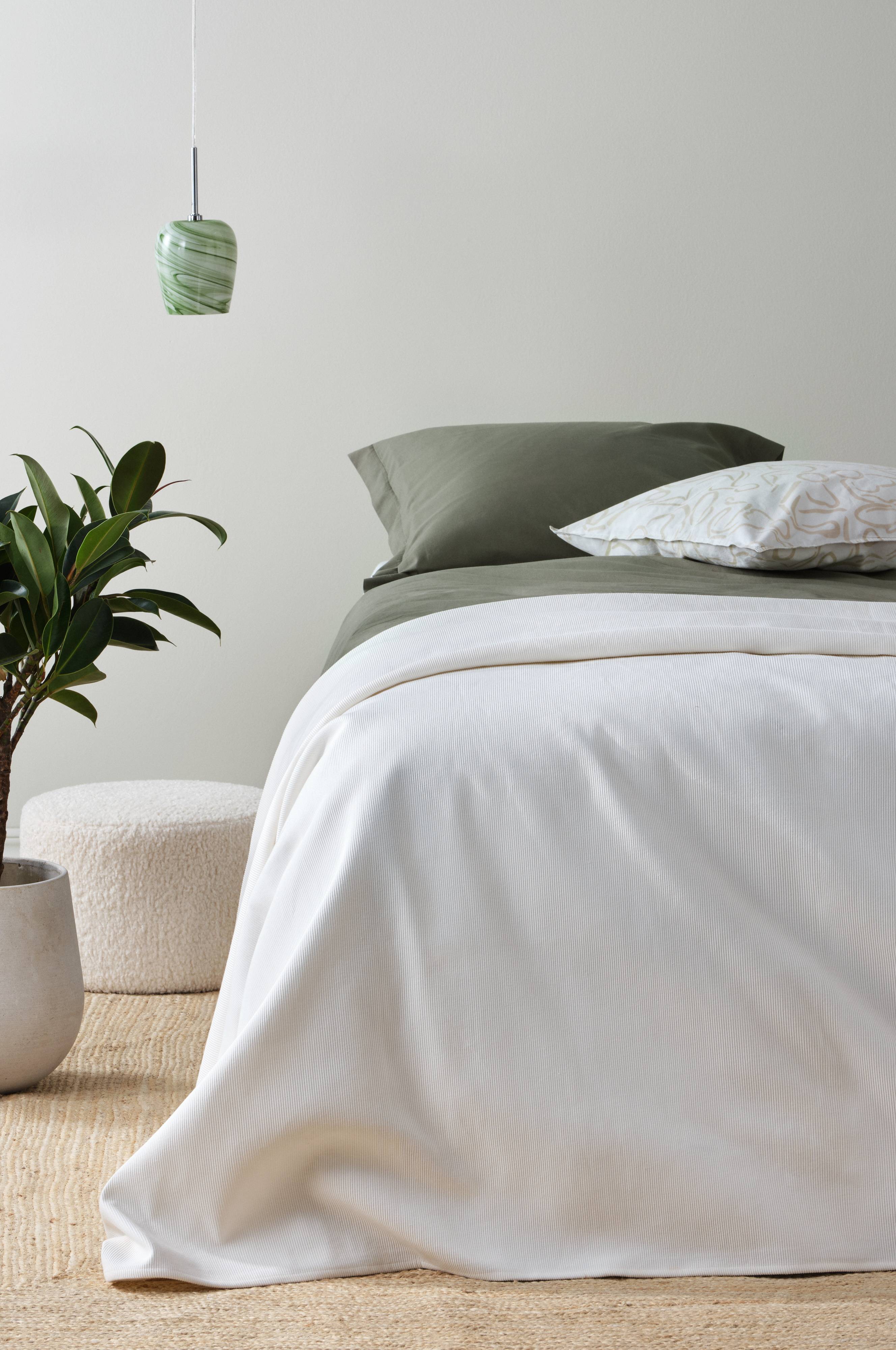 Sengetæppe til enkeltseng. LUZA er et smidigt, strikket sengetæppe som i sin enkelthed giver en klassisk og behagelig redt seng. Vævningen giver et smalstribet mønster tone-i-tone med diskret ribstruktur. Det behagelige bomuldsstof har en gramvægt på 400 g/m². Det er rigtig behageligt at tage en lille lur ovenpå sengetæppet. Pudebetræk medfølger ikke, købes separat.