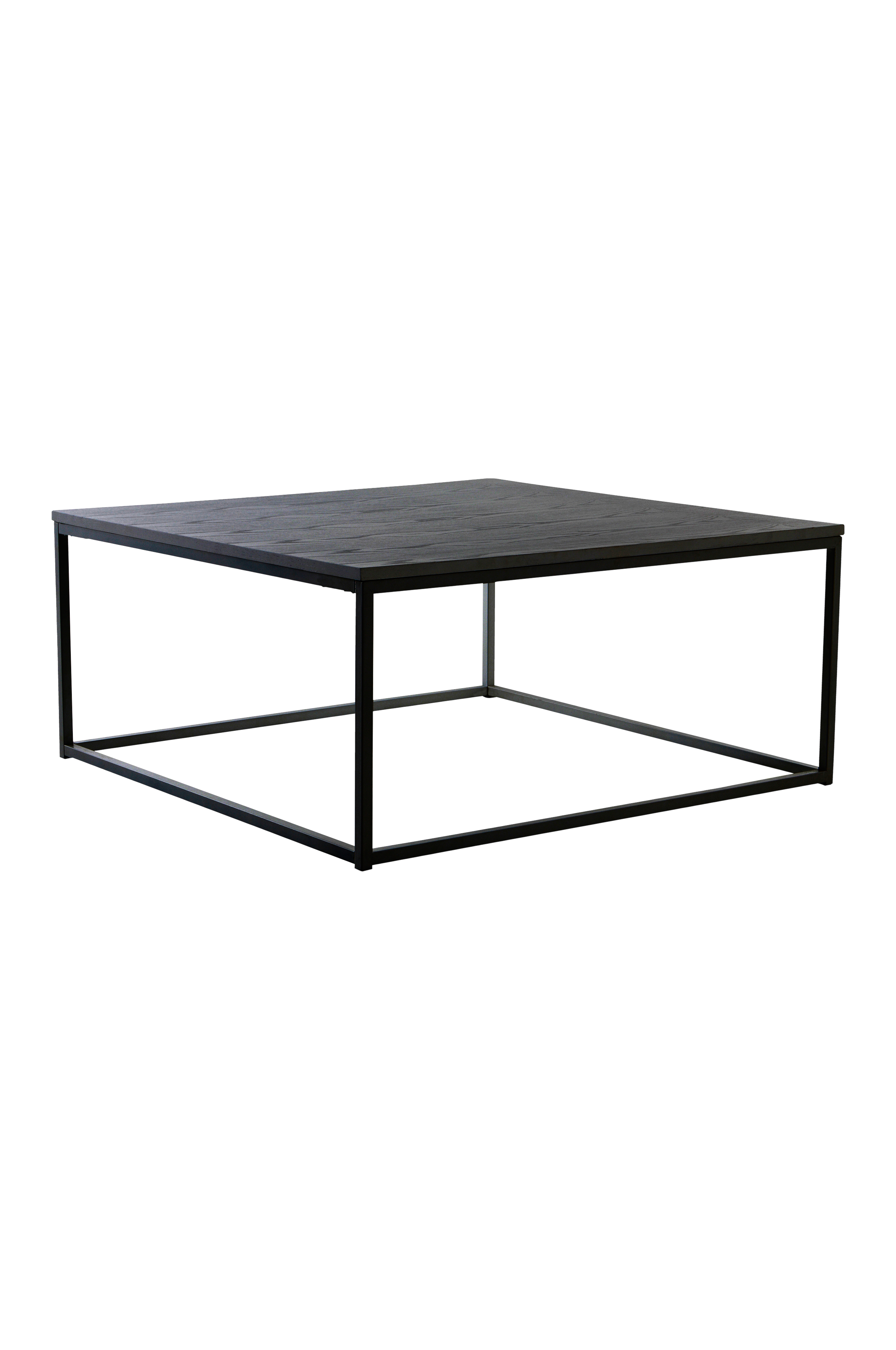 Kvadratisk sofabord med stel af stål og bordplade af MDF med askfinér. Bordpladen har vandbaseret lak og stålprofilen er pulverlakeret. Bordet har stilren design og er let at matche med den øvrige indretning. Skal færdigsamles. Samlevejledning medfølger.