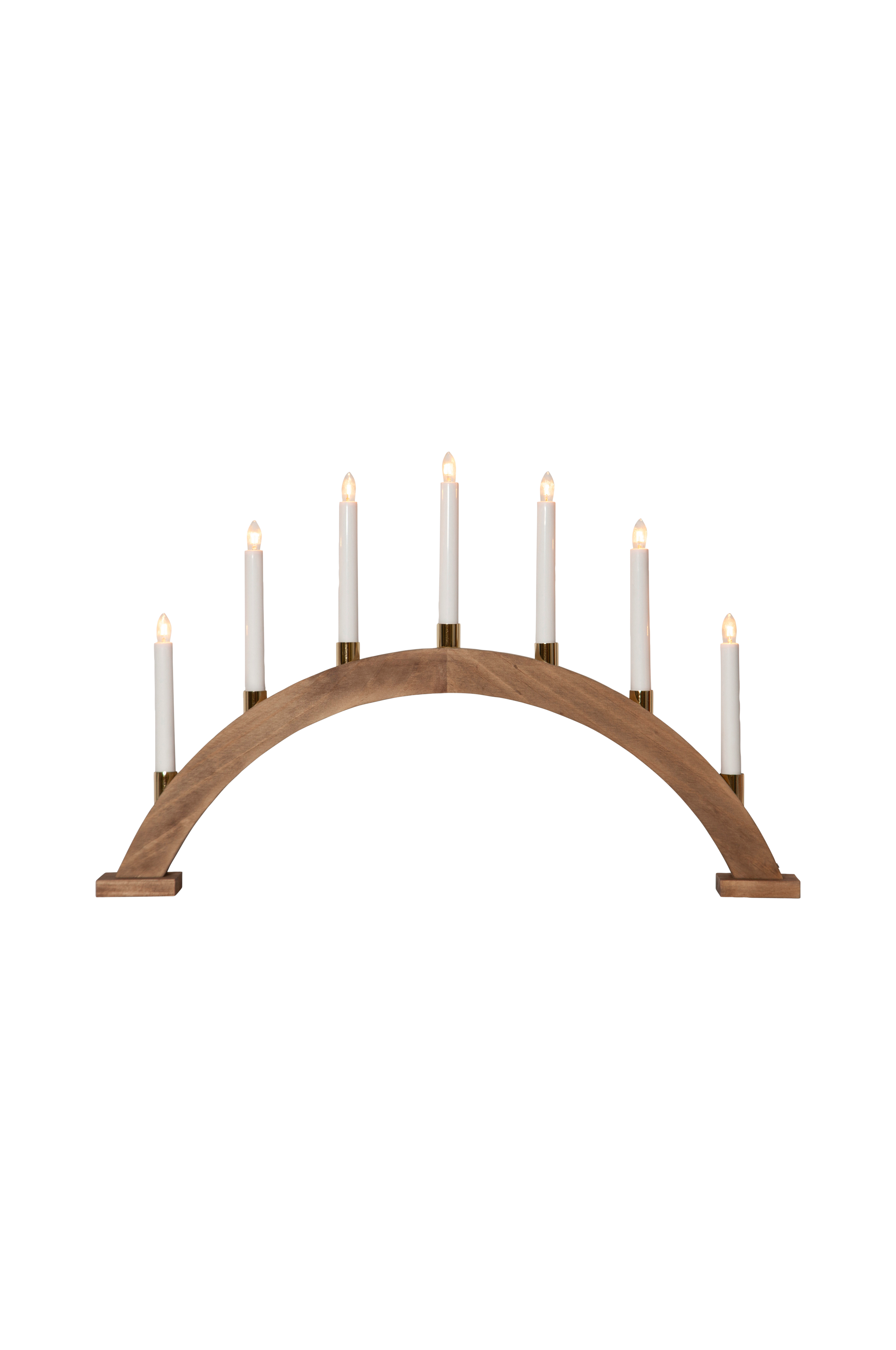 Buet trælysestage med messingbelagt lysestage. Fin adventsstage til at pynte op med til jul. Lysestagen har 7 lyskilder. fsc® står for forest stewardship council®, som er en international non-profit organisation, der blev grundlagt i 1993 med en mission om at skabe ansvarligt skovbrug.