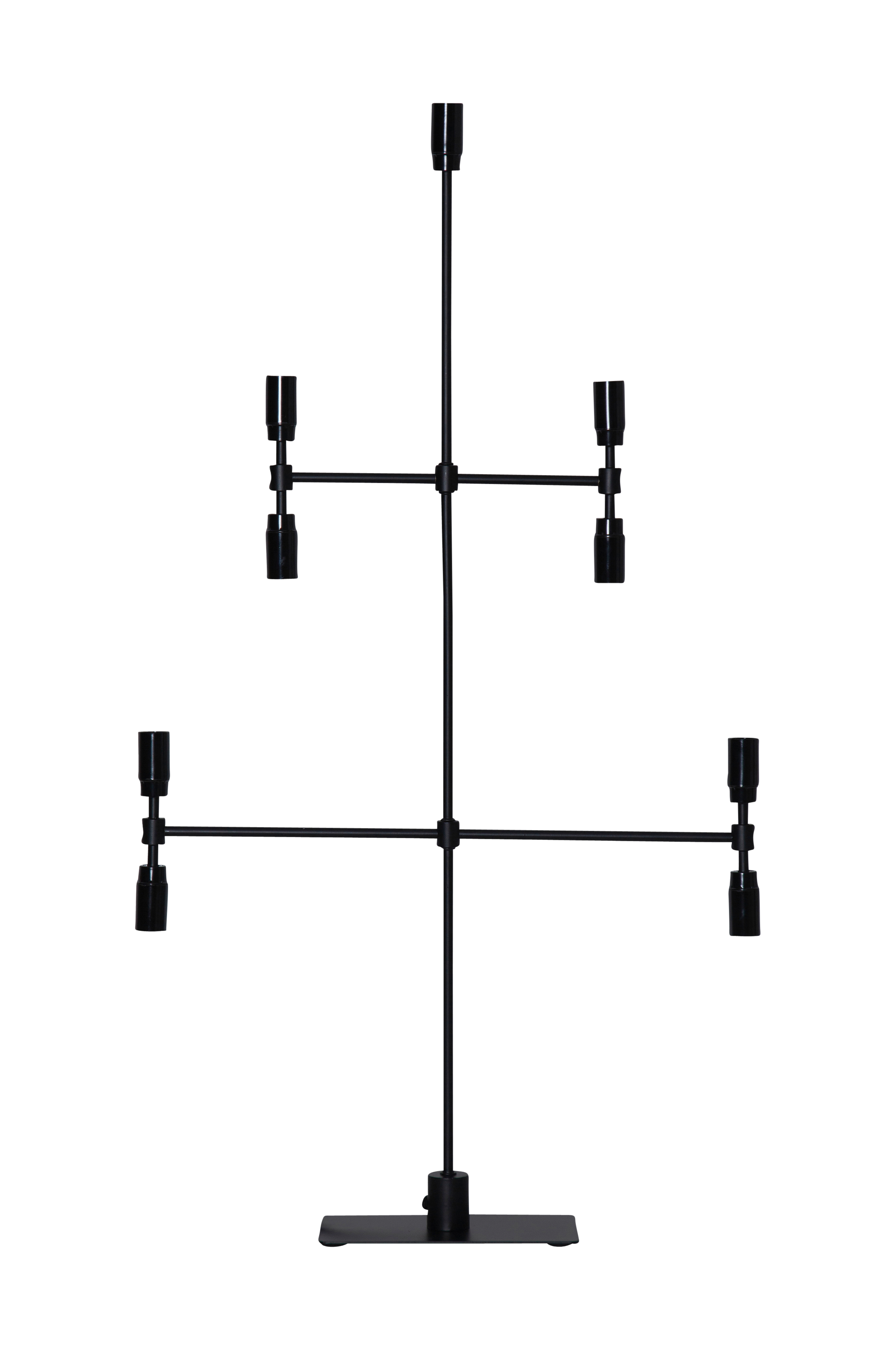 Moderne lysestage i metal til 9 lyskilder med dobbelte fatninger på alle armene med undtagelse af toppen. Dekorer til advent eller året rundt som en fin indretningsdetalje. Passer både hjemme og i offentligt miljø. Højde 91 cm, bredde 51 cm. E14-fatning. Pære medfølger ikke. Volt 230V.