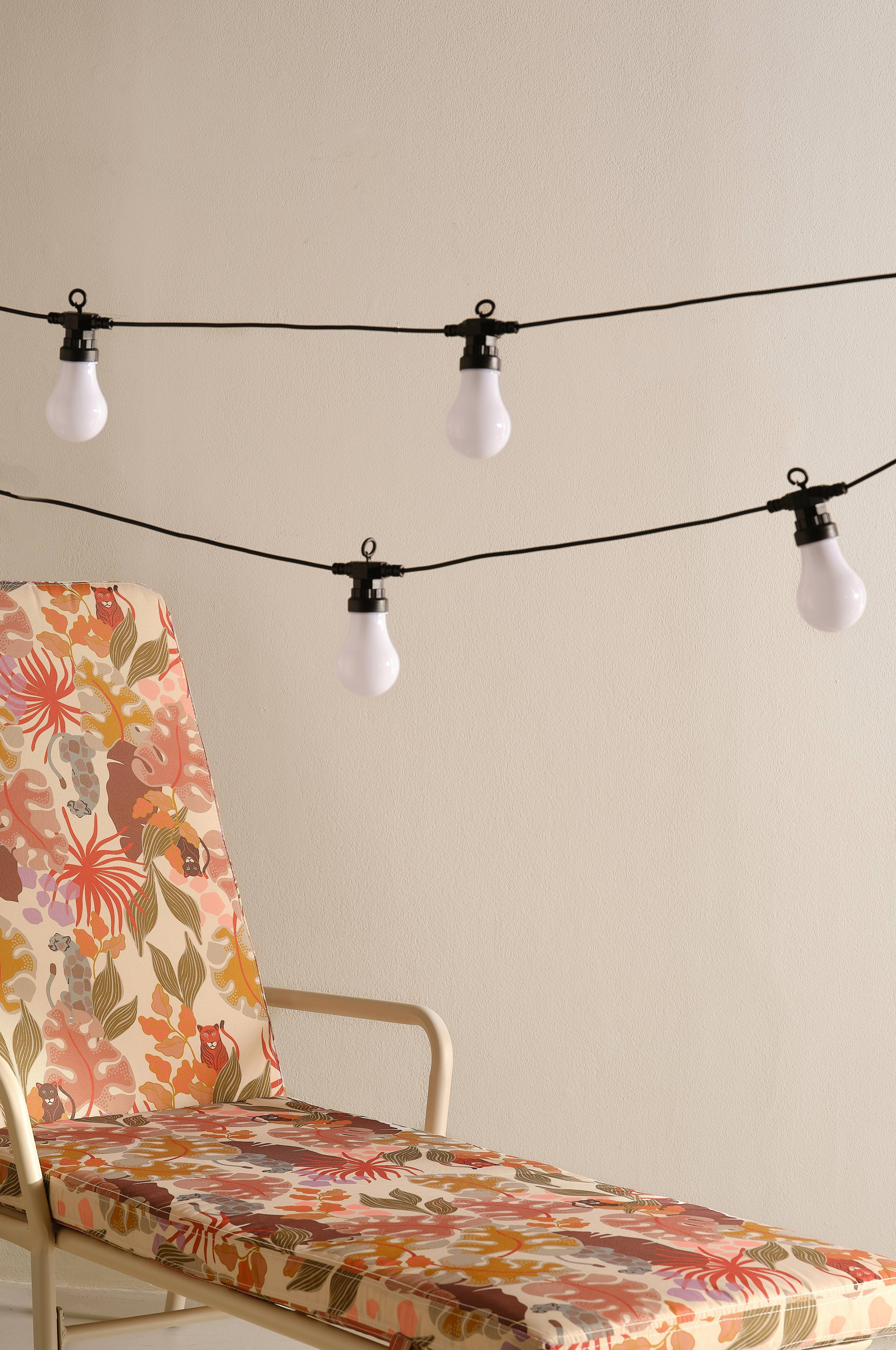 Partylyskæde med 10 opalfarvede pærer med SMD LED indeni. Skøn lyskæde at pynte op med til hverdag og til fest. Giver et smukt, varmt hvidt lysskær i mørket. Transformator: 15V DC 3W, IP44, Schuko-stik. Tilslutningskablets længde er 500 cm. Der er 45 cm mellem pærerne.