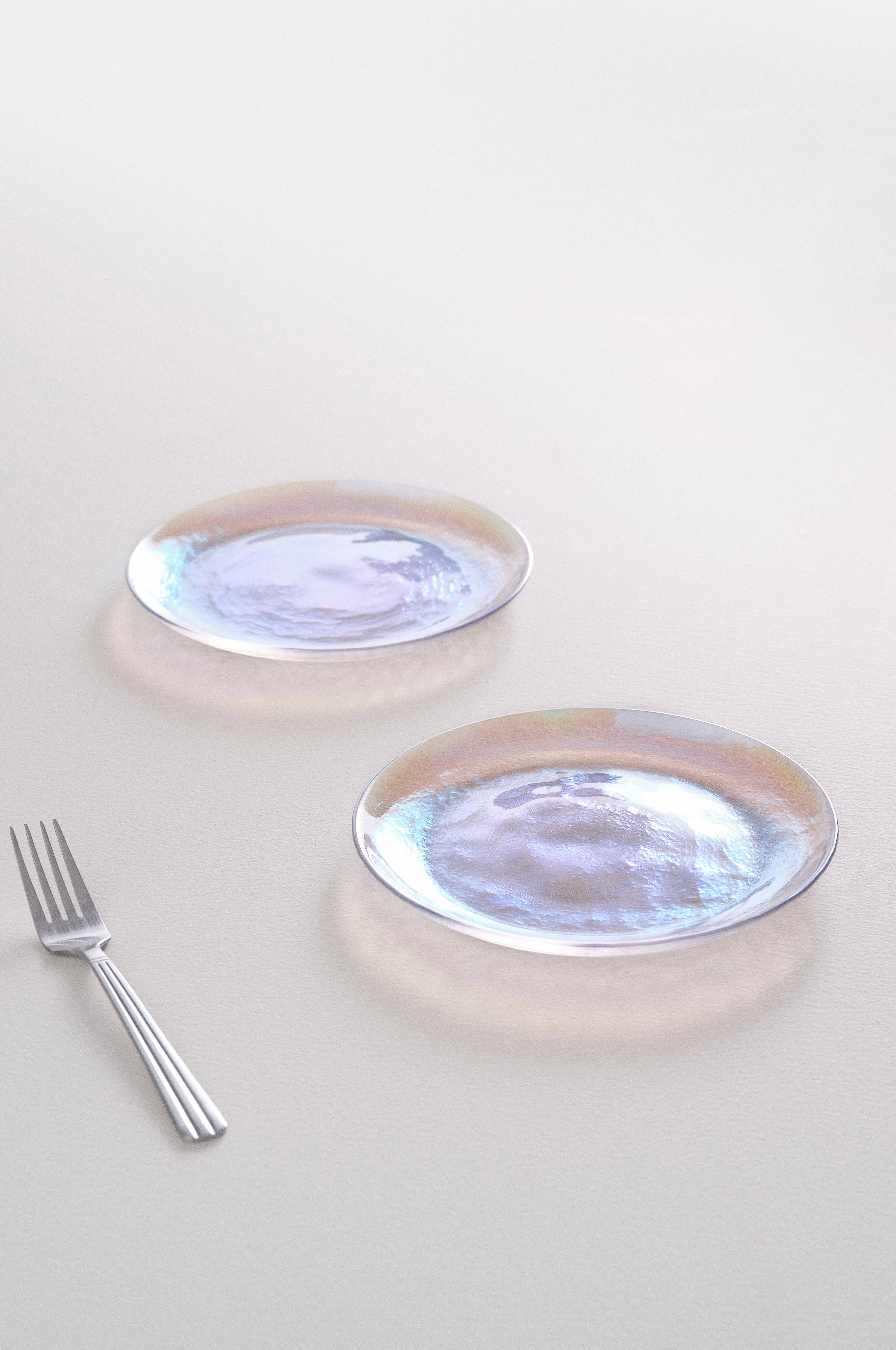 2-pak små tallerkener af glas som har dekorativ uregelmæssighed og afspejler et smukt farvespektrum. De små tallerkener har en blødt afrundet kant, og du kan lægge alt fra forretter til desserter, gode oste eller friske grøntsager på små tallerkener. Alt ser appetitligt og godt ud.