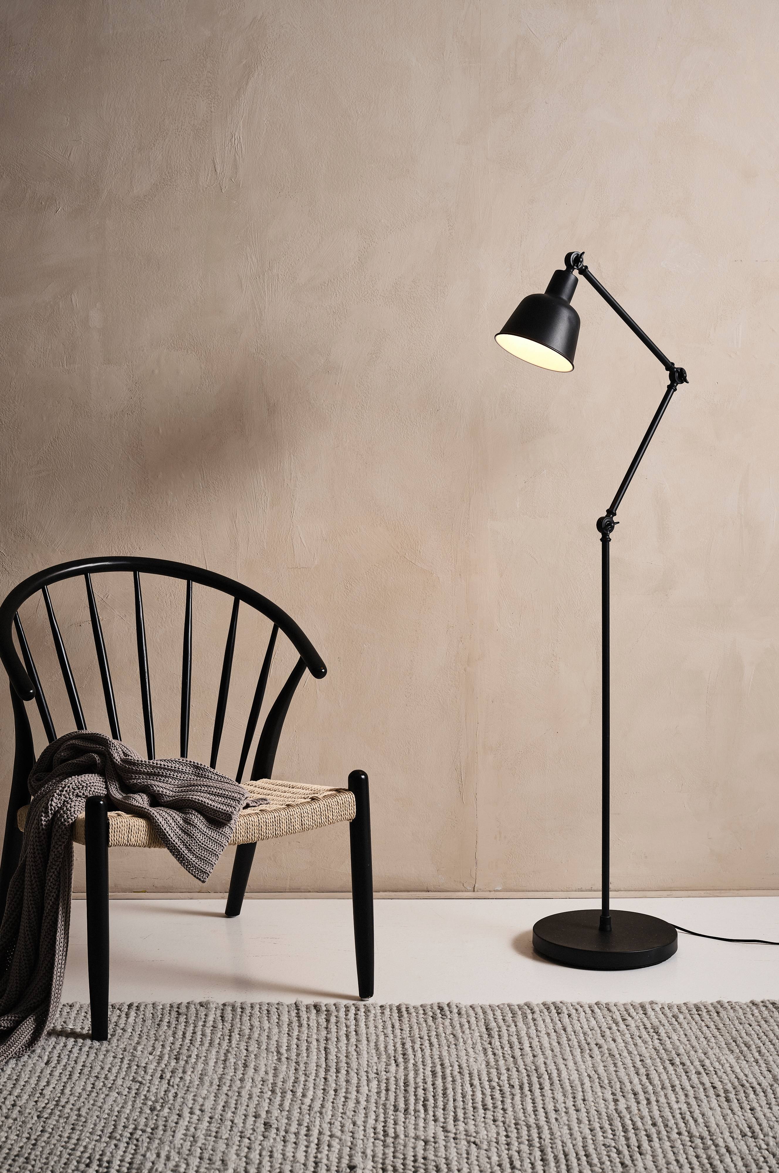 Moderne gulvlampe af metal. Justerbar i tre led, så lyset kan drejes efter ønske og smag. Ledningslængde 1,8 m.