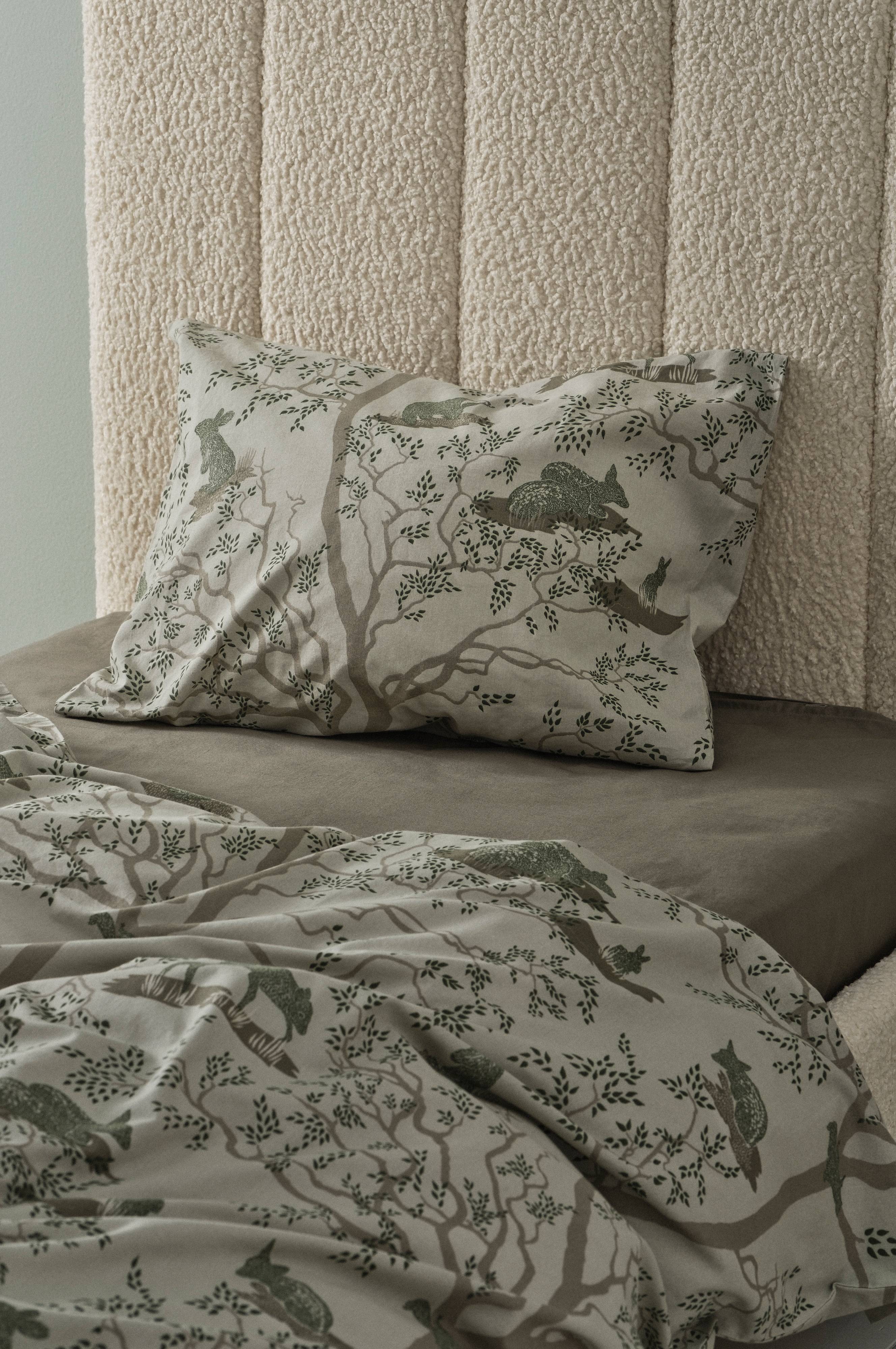 Pudebetræk af økologisk bomuld med printet mønster i harmoniske farver. Stoffet er enzymvasket hvilket giver et skønt, lidt slidt udtryk. Trådtæthed på 144 tc. (Trådtætheden angiver antal tråde, Thread Count, pr. kvadrattomme i et stof. Jo højere trådtæthed, jo højere kvalitet).