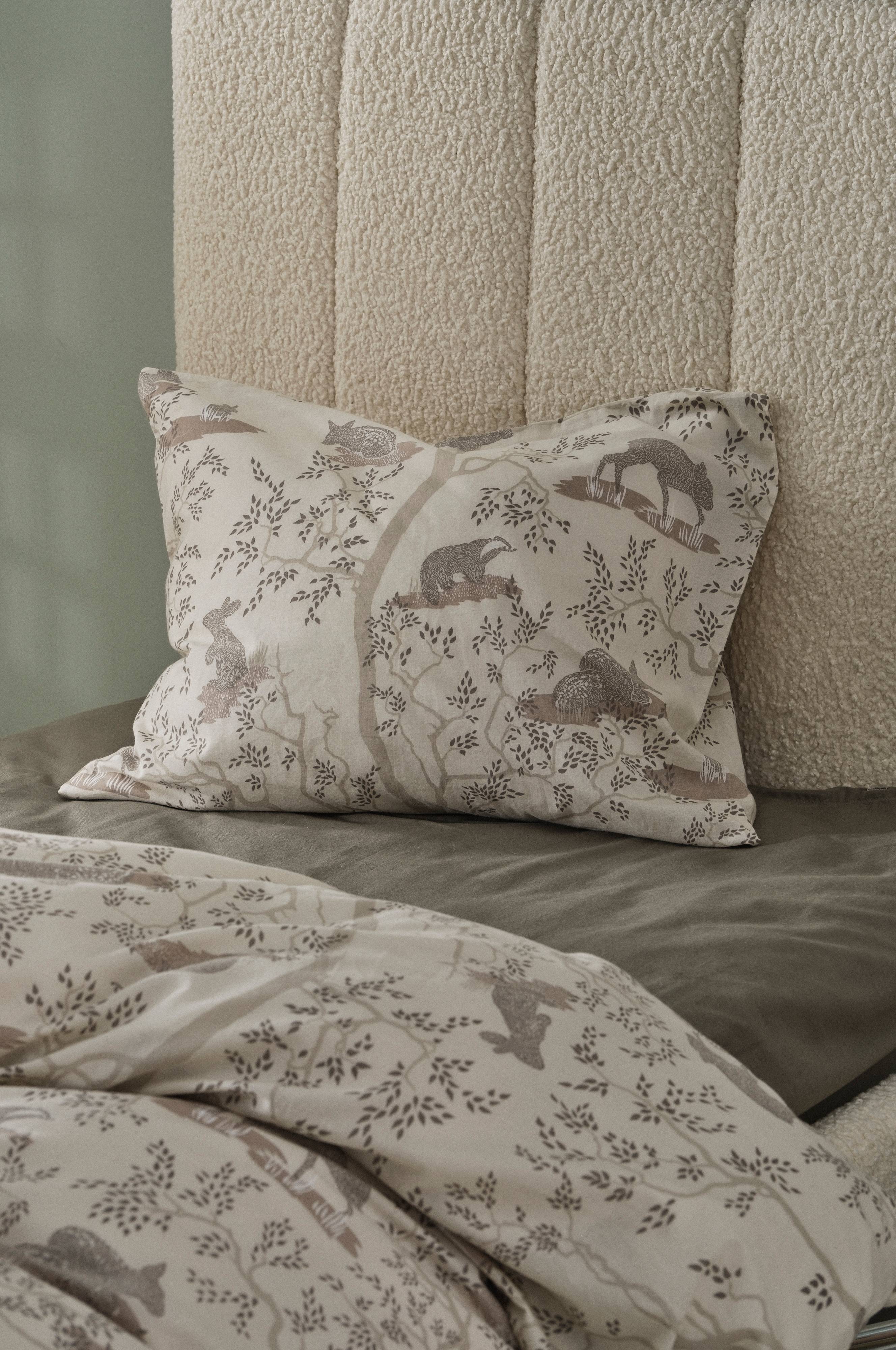 Pudebetræk af økologisk bomuld med printet mønster i harmoniske farver. Stoffet er enzymvasket hvilket giver et skønt, lidt slidt udtryk. Trådtæthed på 144 tc. (Trådtætheden angiver antal tråde, Thread Count, pr. kvadrattomme i et stof. Jo højere trådtæthed, jo højere kvalitet).
