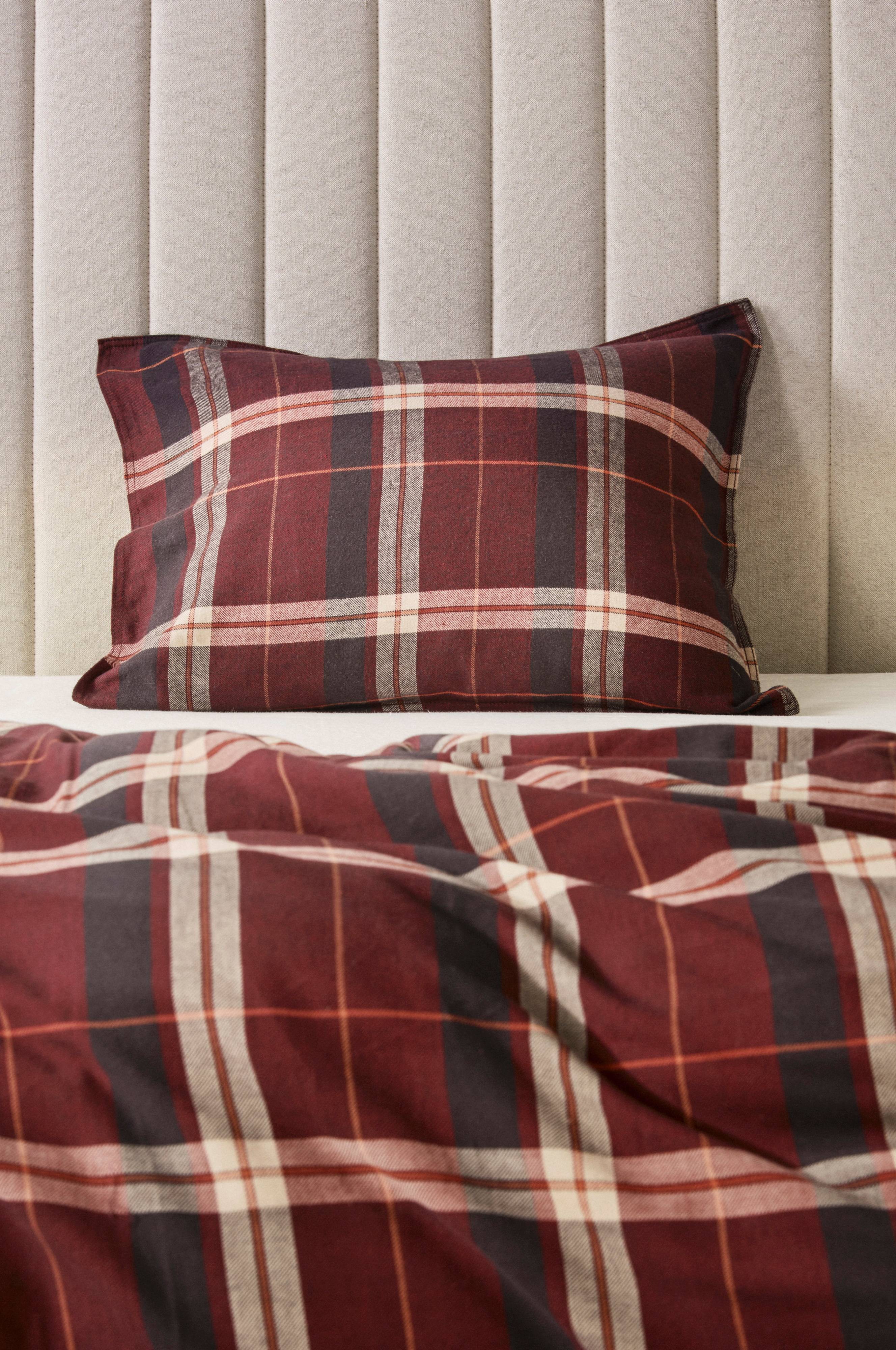 Pudebetræk i bomuldsflonel med garnfarvede tern i klassiske farver som skaber et indbydende udtryk. Flonel er blødt mod huden og varmer skønt. Pudebetrækket har dobbeltsøm rundt om og lukkes med knapper.