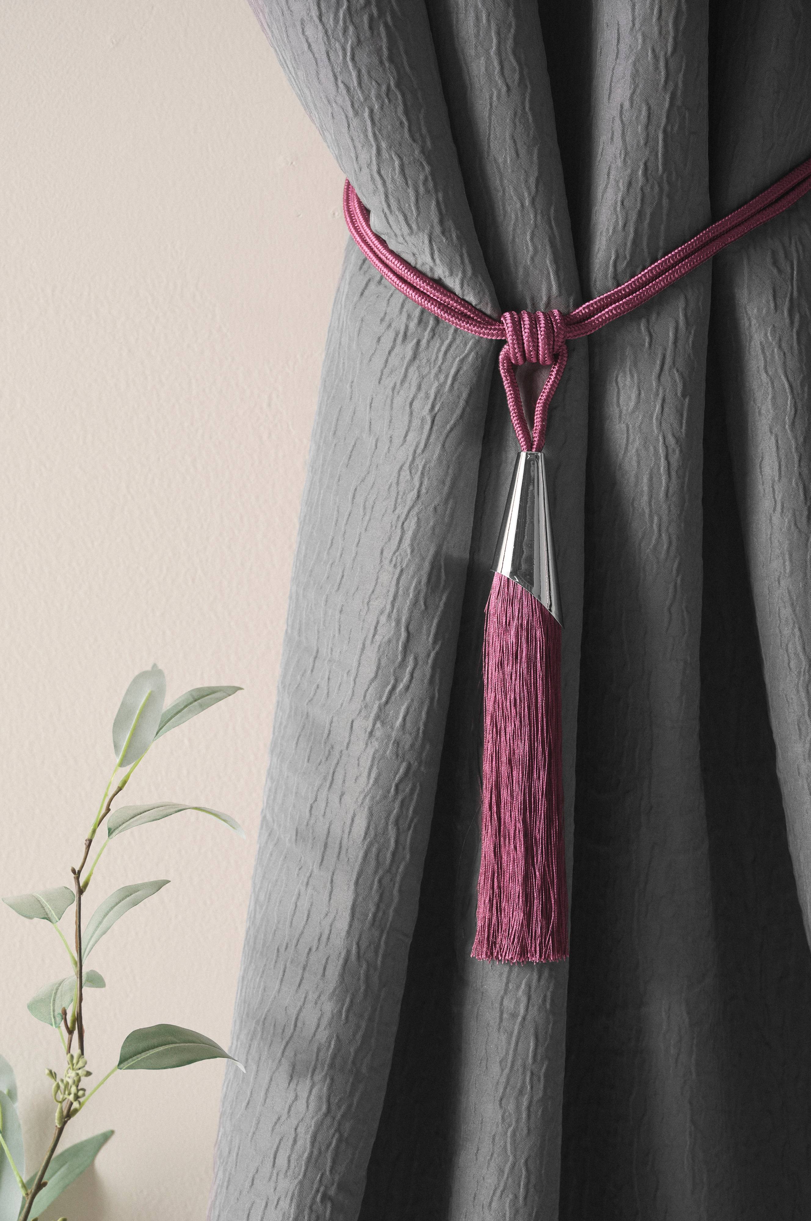 2-pak sidebånd med kvast af polyester som giver en elegant gardinophængning.