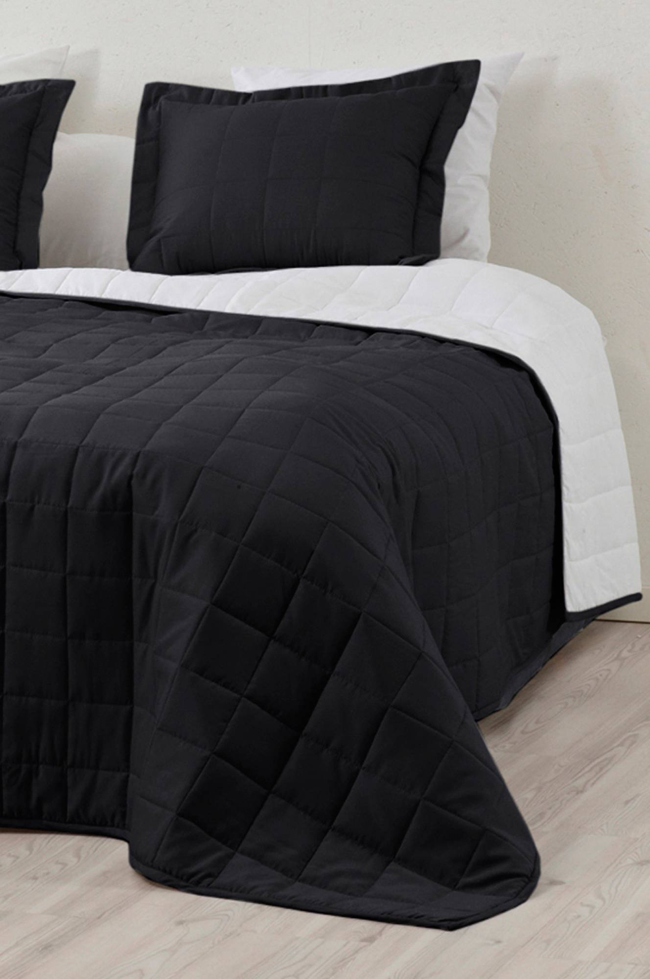 Quiltet sengetæppe med en blød, dejlig overflade. Vendbar med en lys og en mørk side i flere letmatchede farver.
