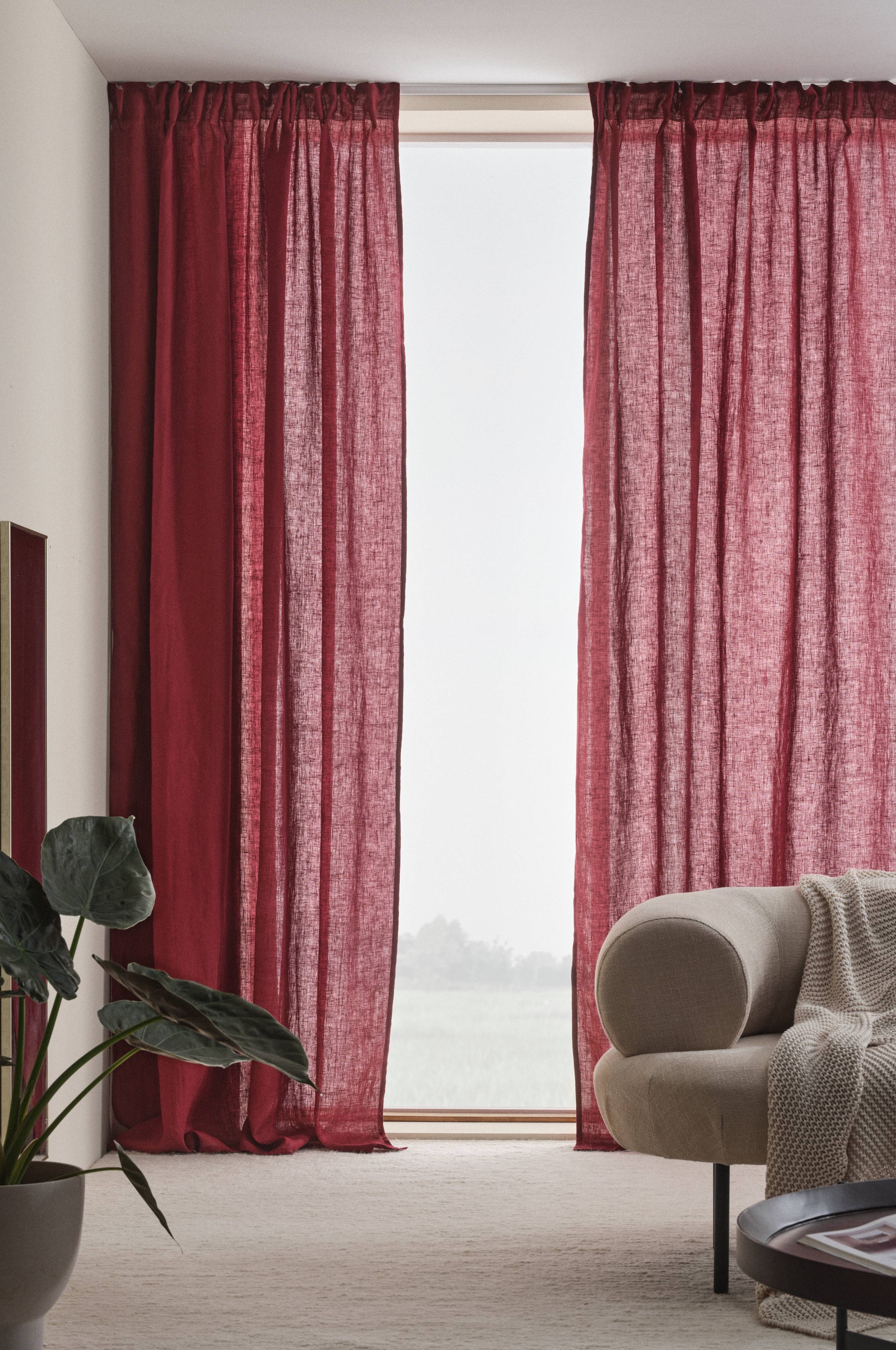 To gardinlængder i fin hørkvalitet. Længderne har påsyet multifunktionsbånd. Gardinet kan hænges op med fingerhægter, løbegang samt skjult strop. MEJA er en ensfarvet serie i smukke nuancer. Blandingen af farve og kvalitet giver harmoni og balance.