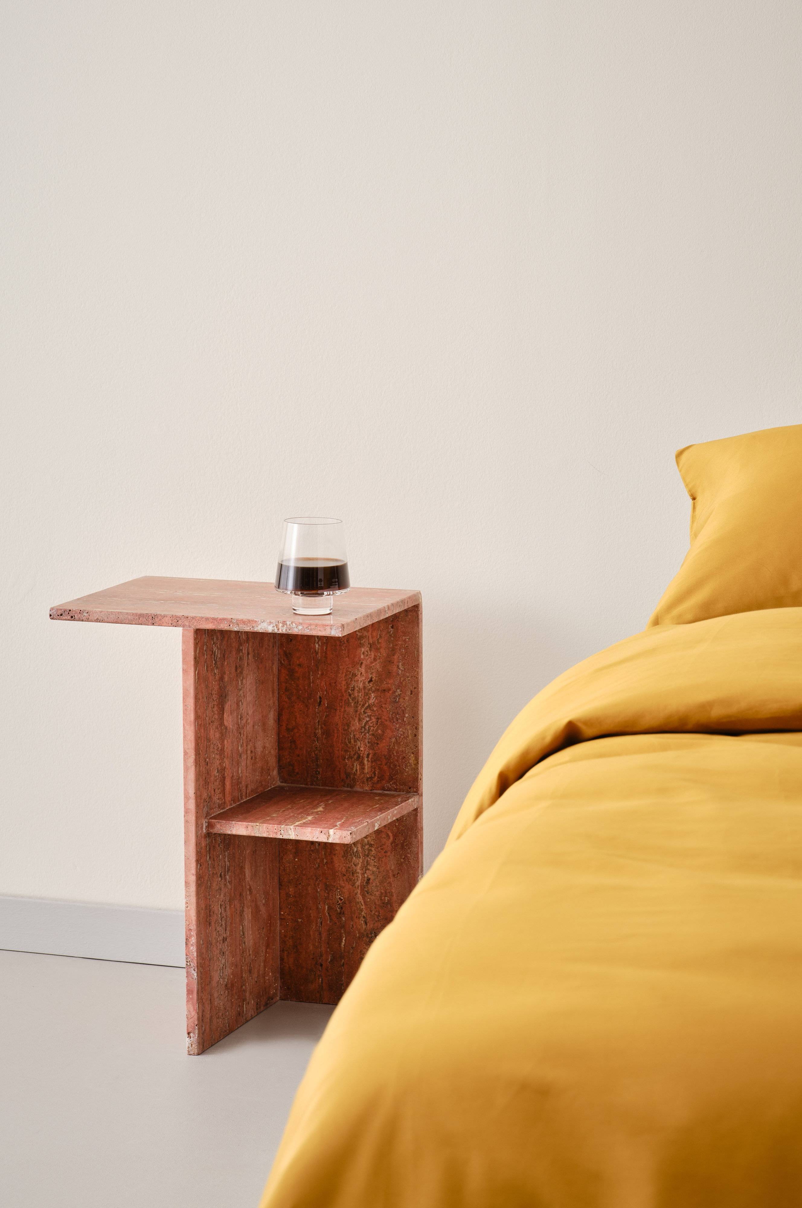 MELETO Sengebord er lavet af flot travertin med naturlige marmoreringer og et unikt mønster. Forvent små afvigelser i farve og tekstur, hvilket bidrager til dets charme. En hylde i højre side giver praktisk opbevaring. Placeres bedst på venstre side af sengen. Kan bruges som sidebord i stuen. Inkluderer anti-tip hardware for ekstra sikkerhed. Løft dit soveværelse med MELETOs elegante håndværk.