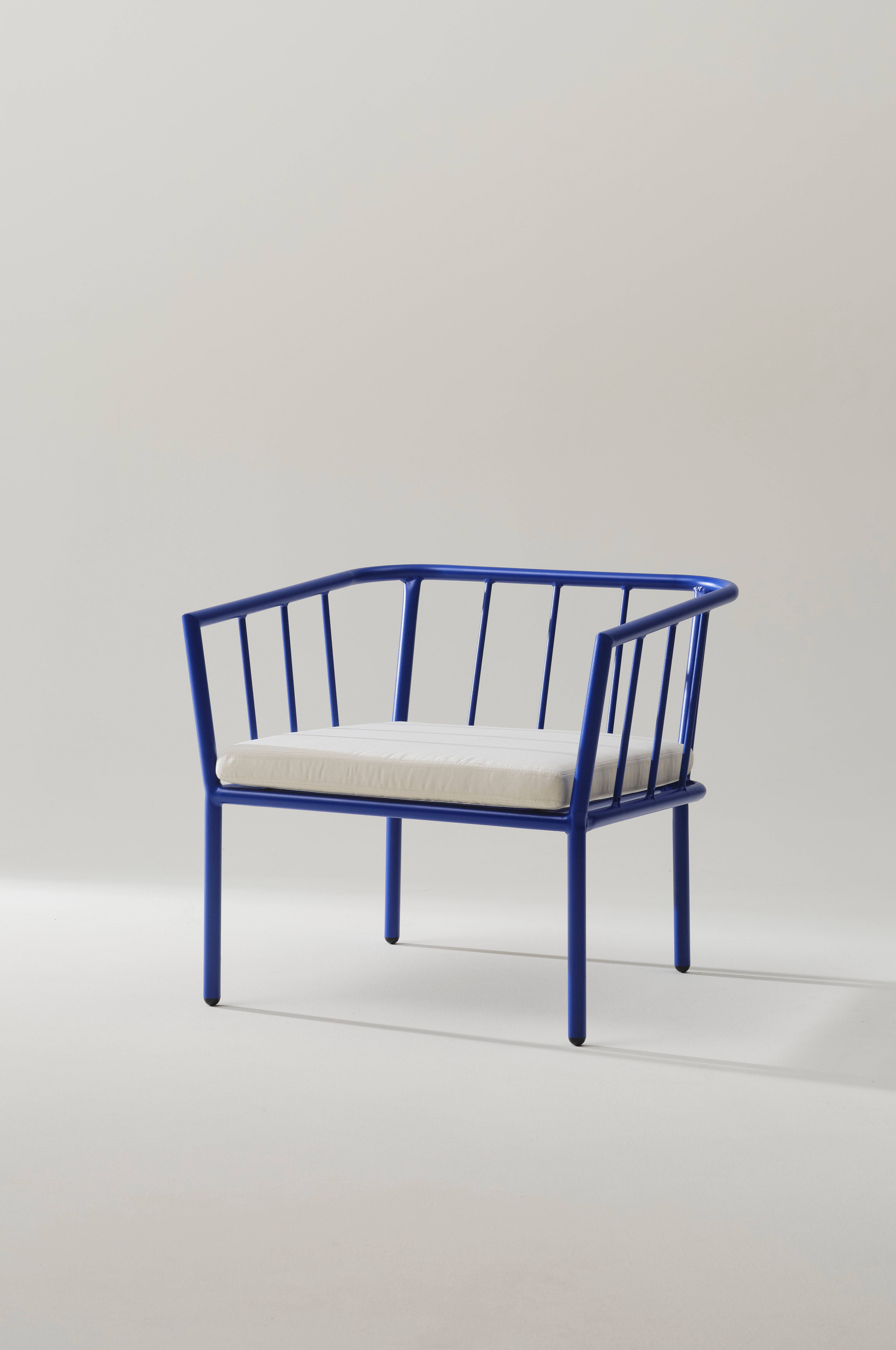 Lænestol af pulverlakeret aluminium med en mat finish, der ikke blænder i sollyset. Sædehynde med polyesterbetræk og skumpolstring. MENTON kan stå ude og gør udelivet lettere, for aluminium ruster ikke. Du behøver ikke at bære, så snart du vil sidde ude. Møblerne er pæne og giver den rette loungefølelse.
