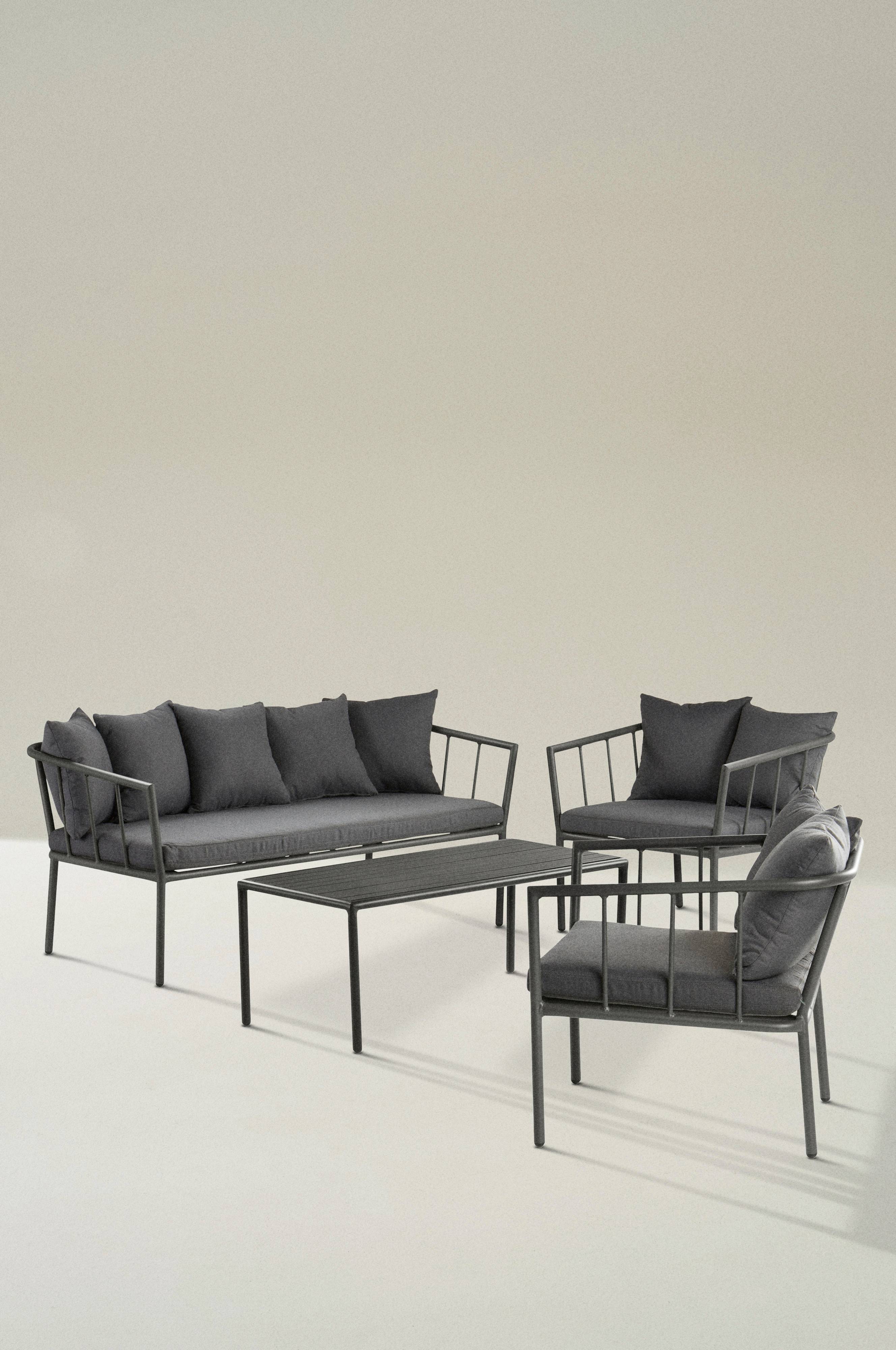Bedømmelse 5 af 5 Verifierad købereMenton loungemøbler - 4 dele Sort/mørkegrå hynder