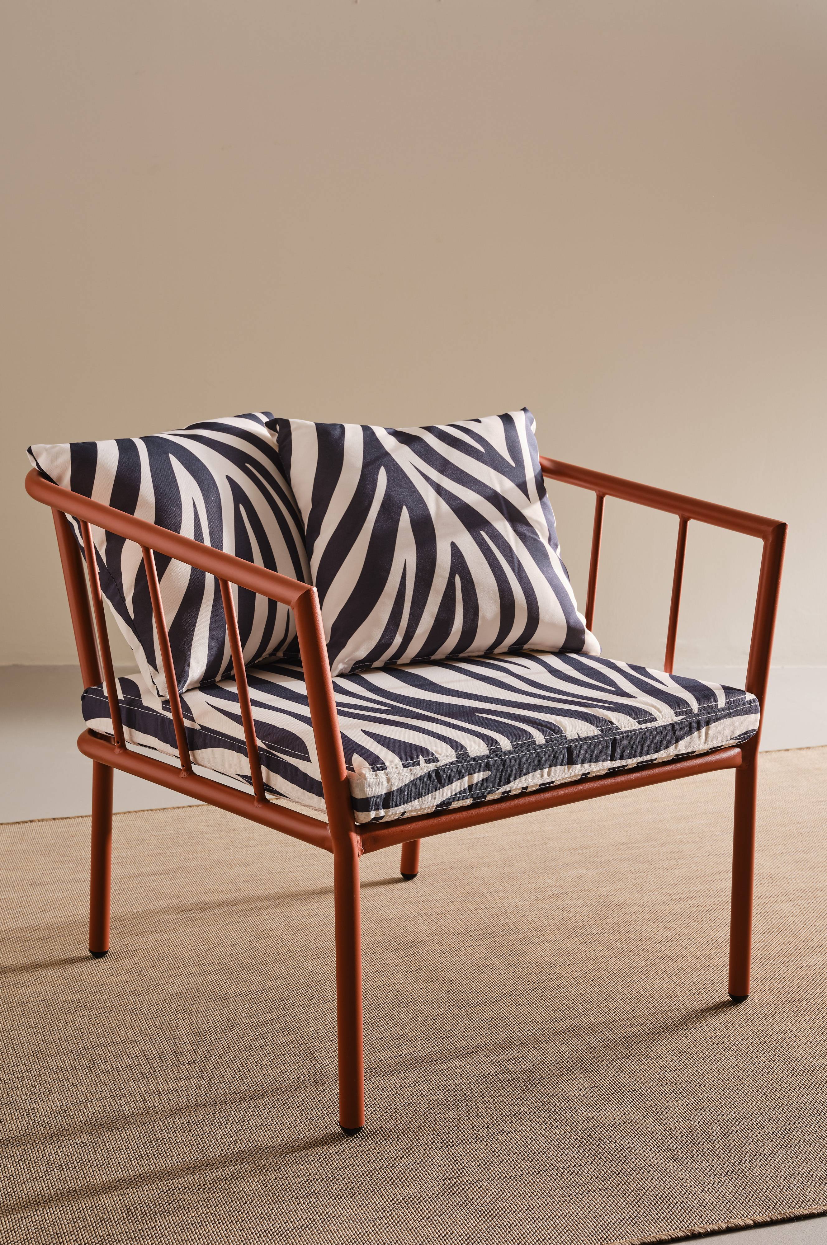 Giv din udendørs oase nyt liv med hyndesættet til MENTON-loungestolen. Hynderne er fremstillet af vandafvisende polyester, så de kan holde til vind og vejr, og de har et retroprint designet af Maria Carlberg, som giver haven et strejf af moderne flair. Hver hynde har et aftageligt betræk med lynlås til nem rengøring, så dit uderum forbliver både stilfuldt og praktisk. Løft ubesværet komforten og æstetikken i din have med MENTON-sættet.